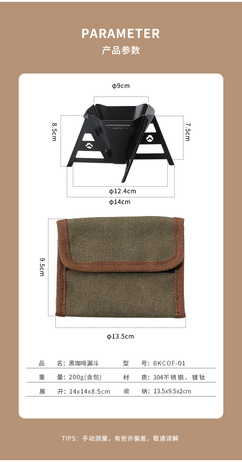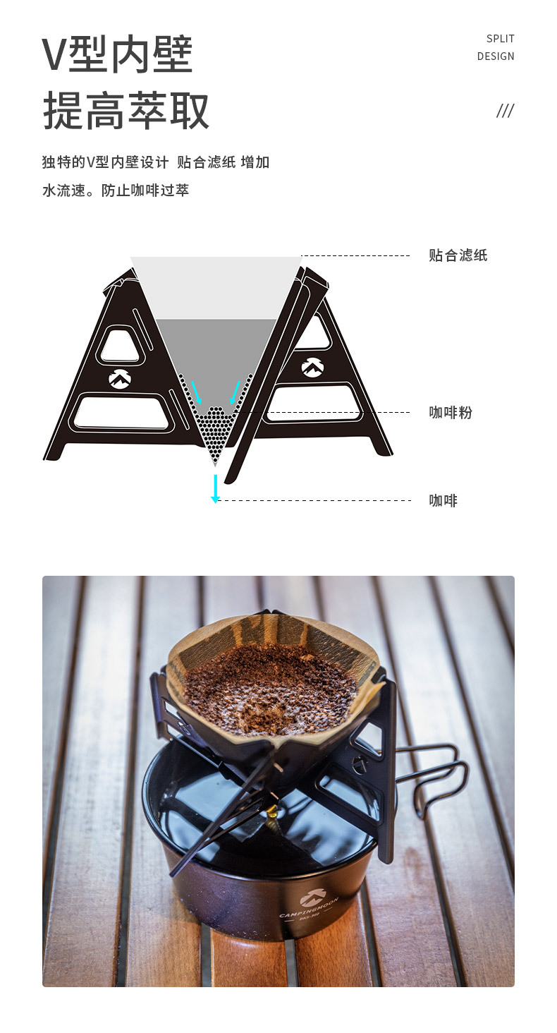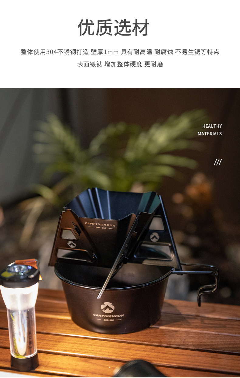 Coman acero inoxidable de titanio-plateado plegable portátil acampar al aire libre filtro de café goteo estante embudo de café
