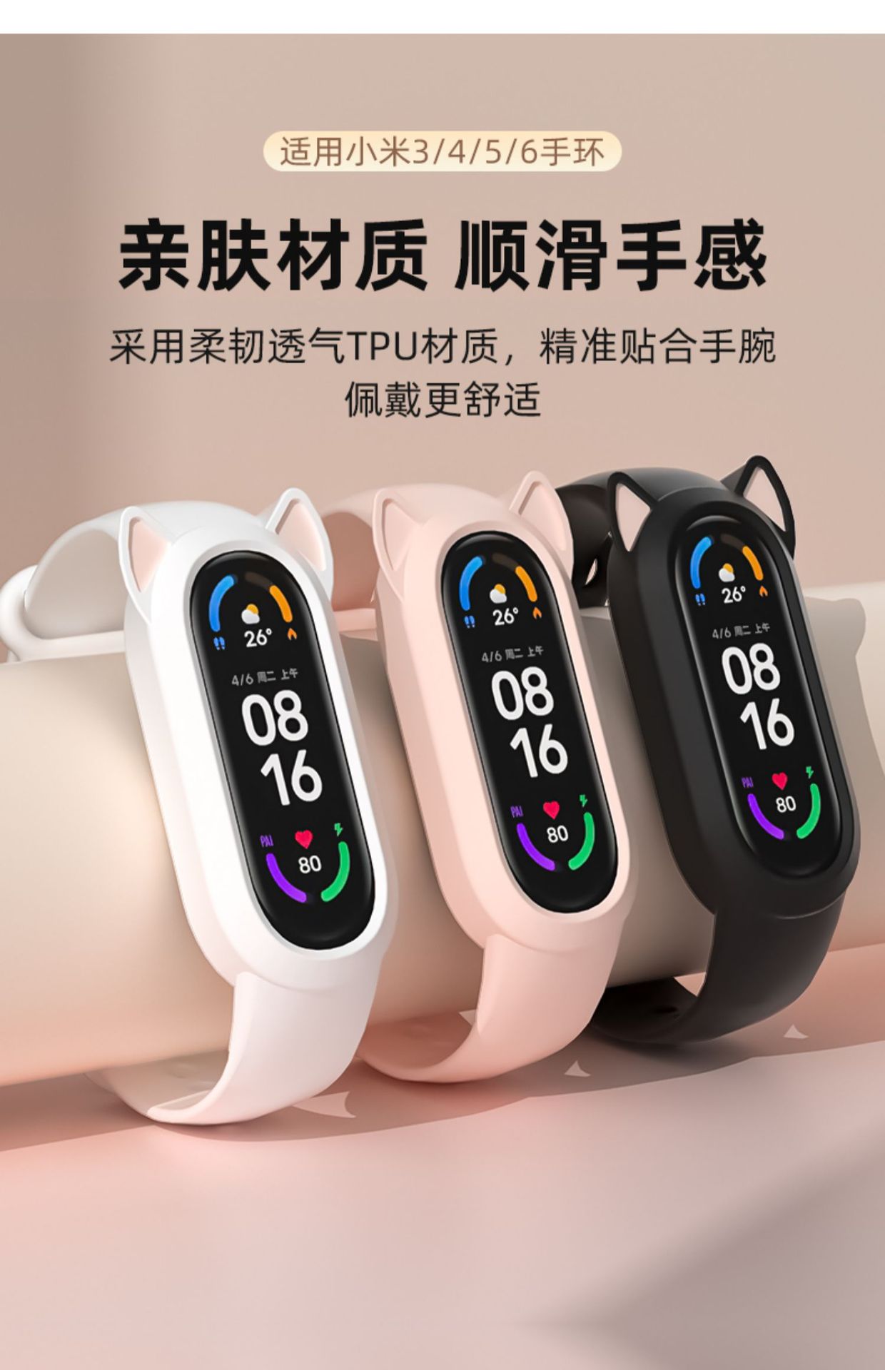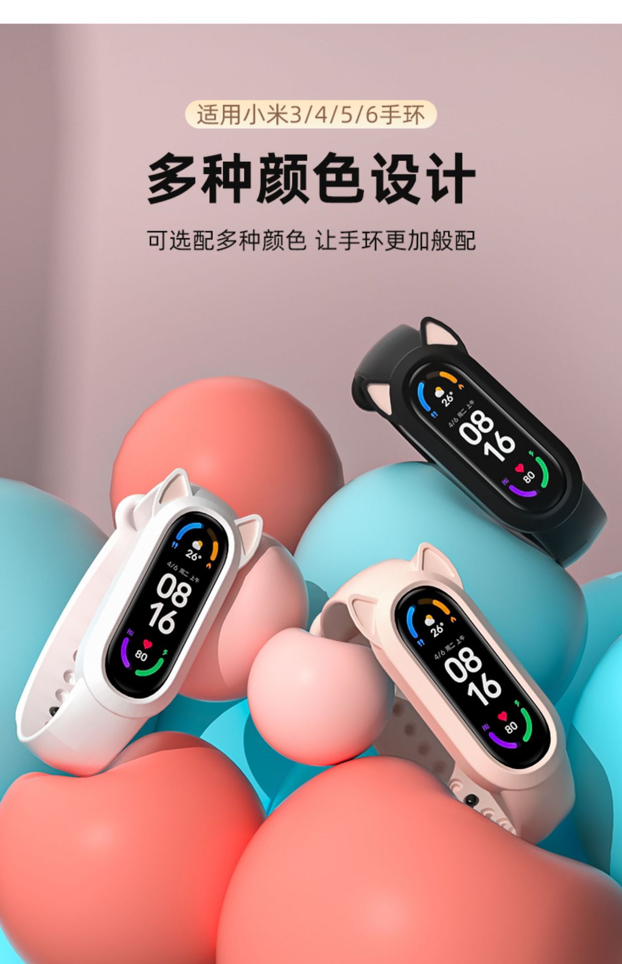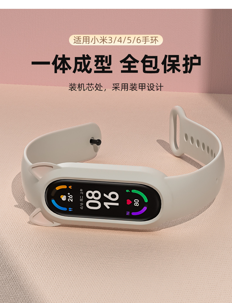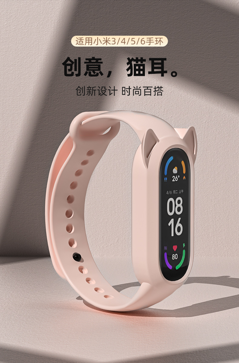 Adecuado para Xiaomi pulsera 8/9 correa 7 lindo gato oreja todo en uno 3/4/5/6 pulsera de silicona versión NFC para hombres y mujeres