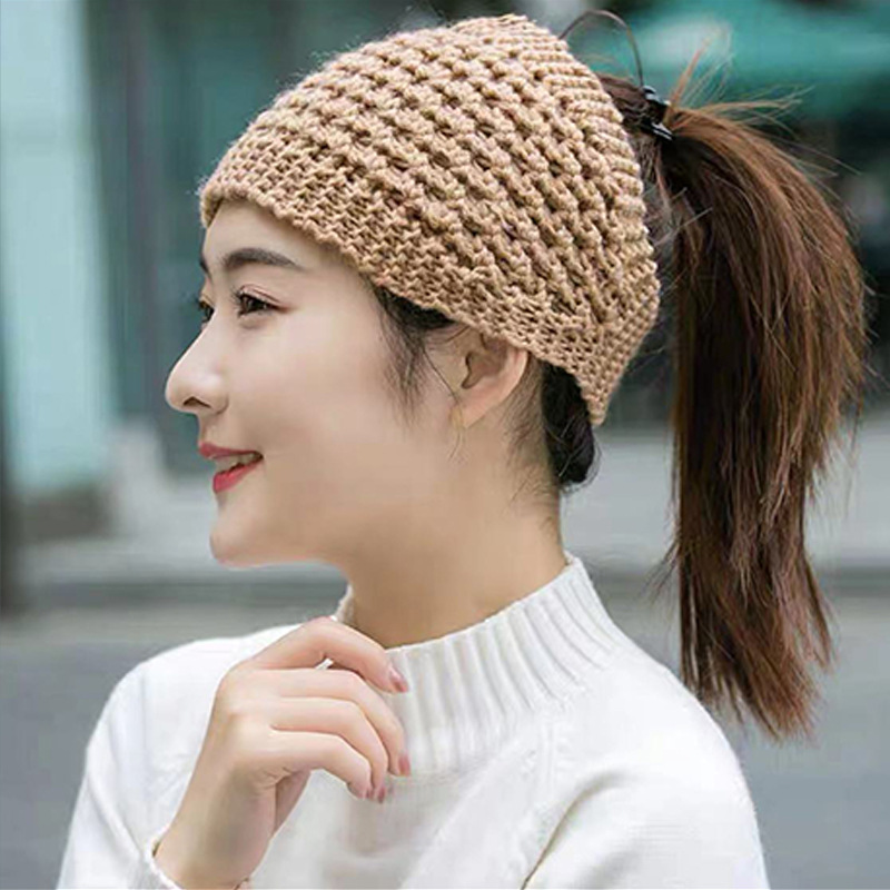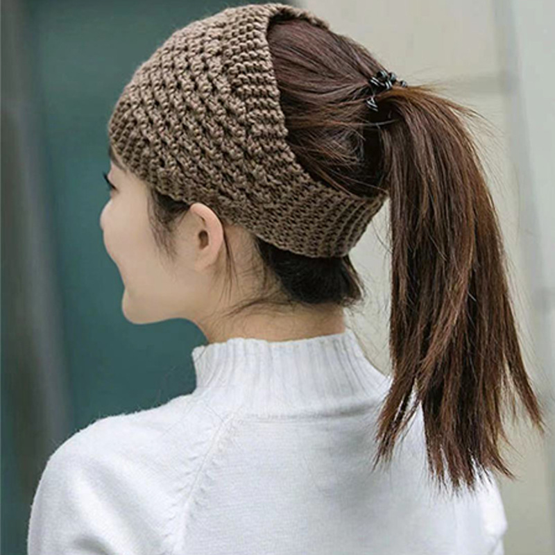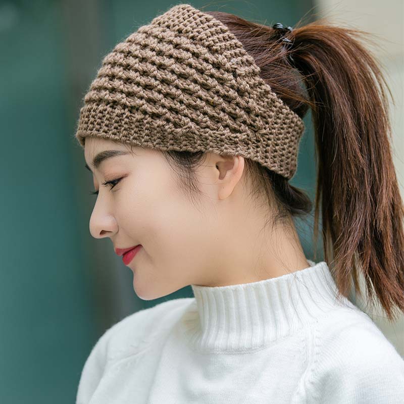 Otoño e Invierno hecho a mano de punto de lana banda de pelo cálido oído protección sombrero de lana banda de pelo de ala ancha accesorios para el cabello para las mujeres