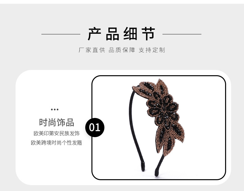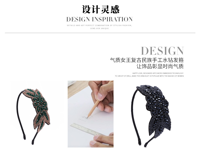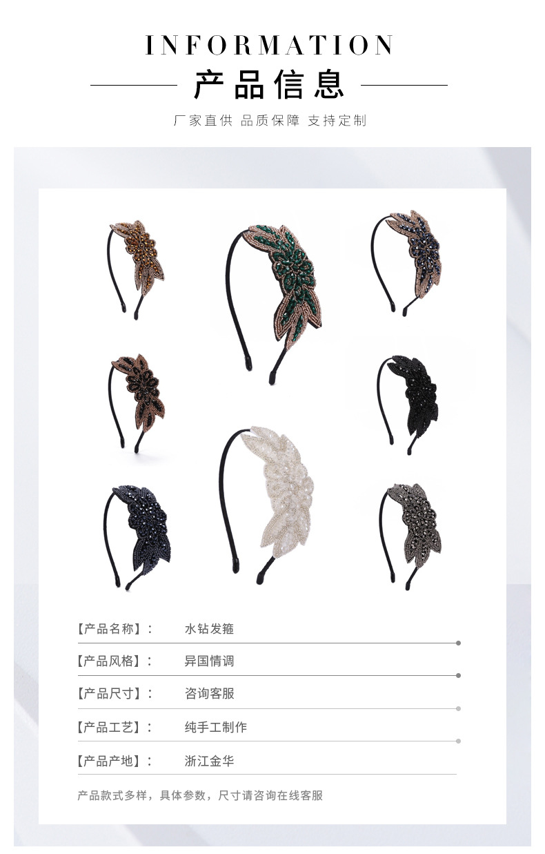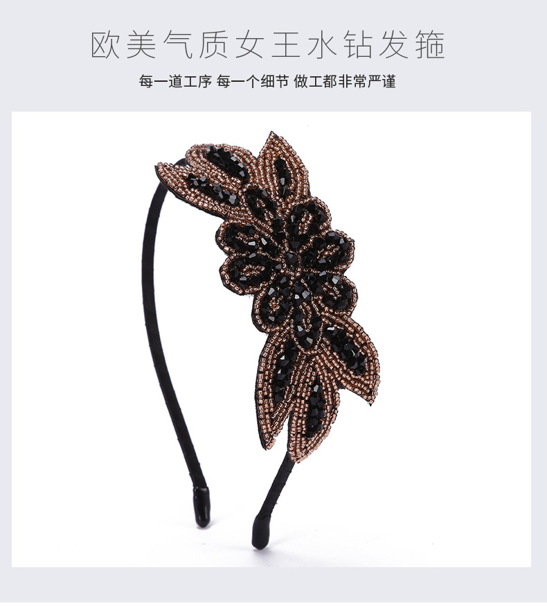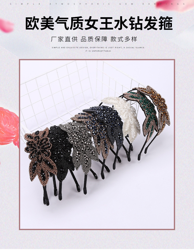 Europea y americana elegante reina retro étnico hecho a mano con cuentas rhinestone diadema personalidad bohemia diadema horquilla de viaje
