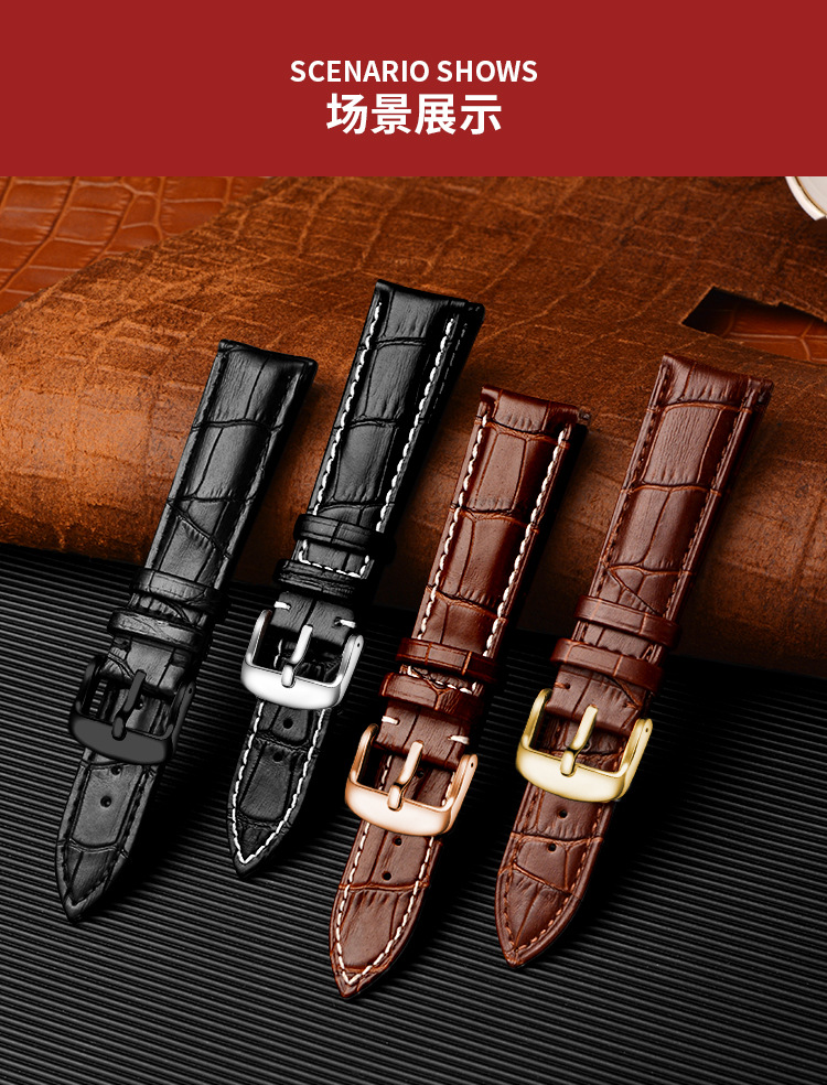 Suministro directo de fábrica primera capa de piel de vaca hebilla de reloj correa de bambú raya multi-color opcional hombres y mujeres 12 -- 24mm