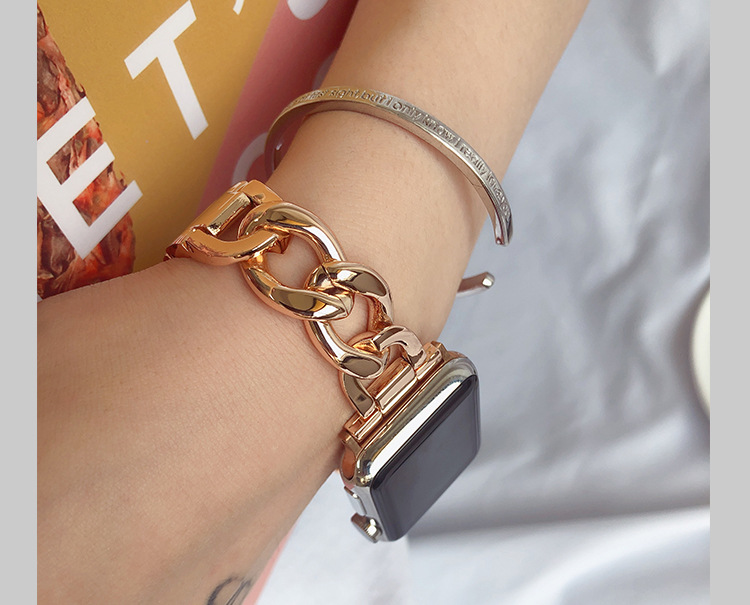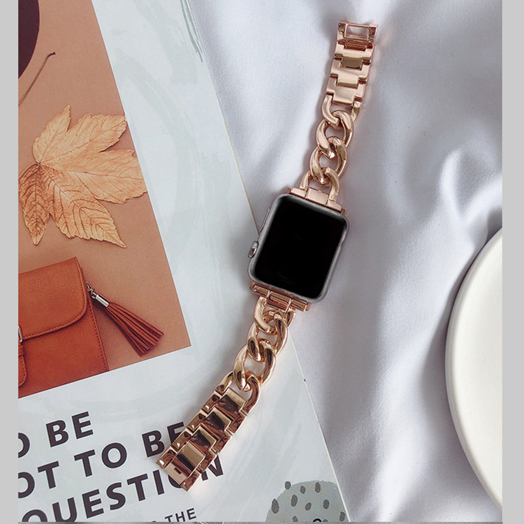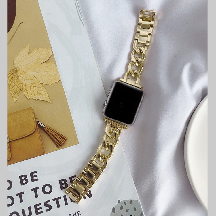 Correa de acero con cadena de mezclilla de una sola fila adecuada para Apple Watch 678910 generación, correa de cadena iWatch S10, correa de metal.