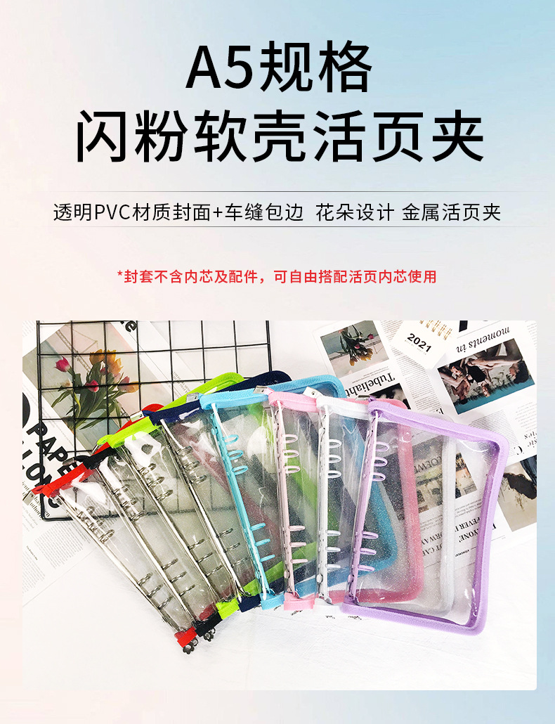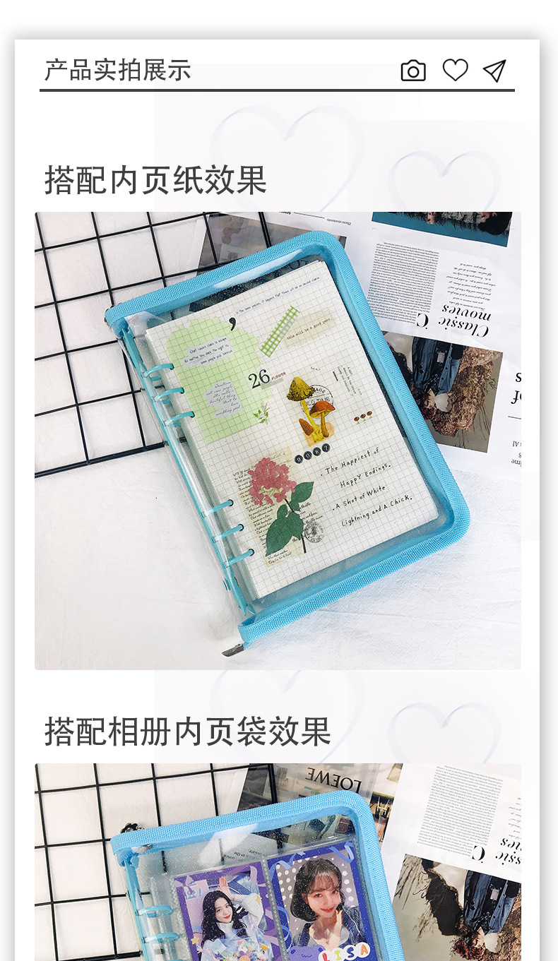 Libro de hojas sueltas de seis hoyos en color japonés y coreano estilo ins persiguiendo estrellas a5a6 borde de cremallera transparente Libro de mano de 6 hoyos en línea papelería de celebridades