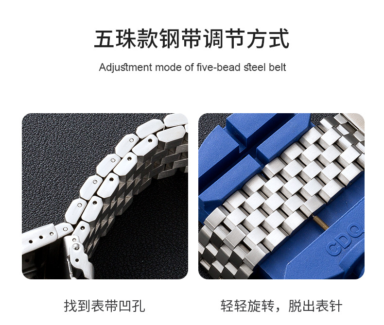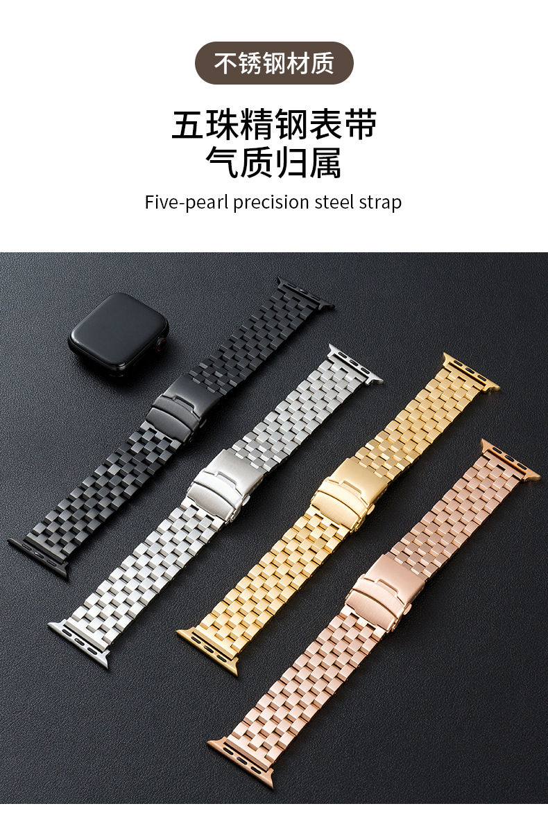 Aplicable a Apple Watch1/8 Apple Samsung Huawei GT Series GT2/GT3Pro correa de acero macizo con cinco cuentas