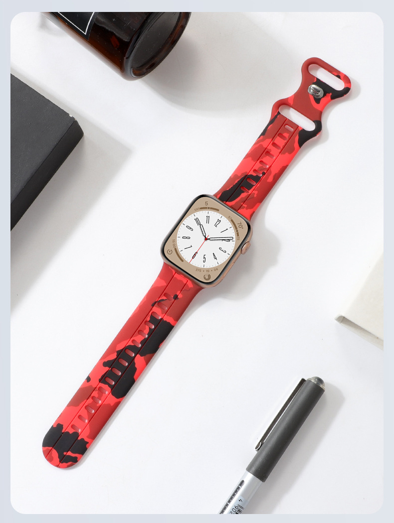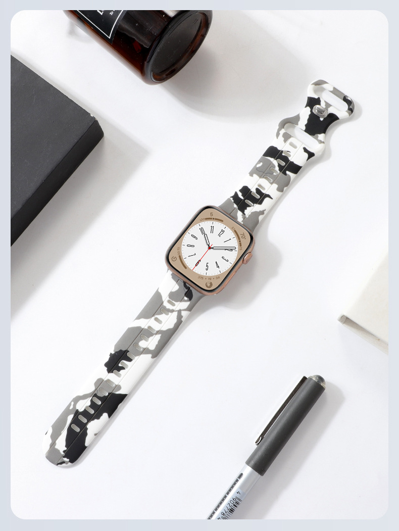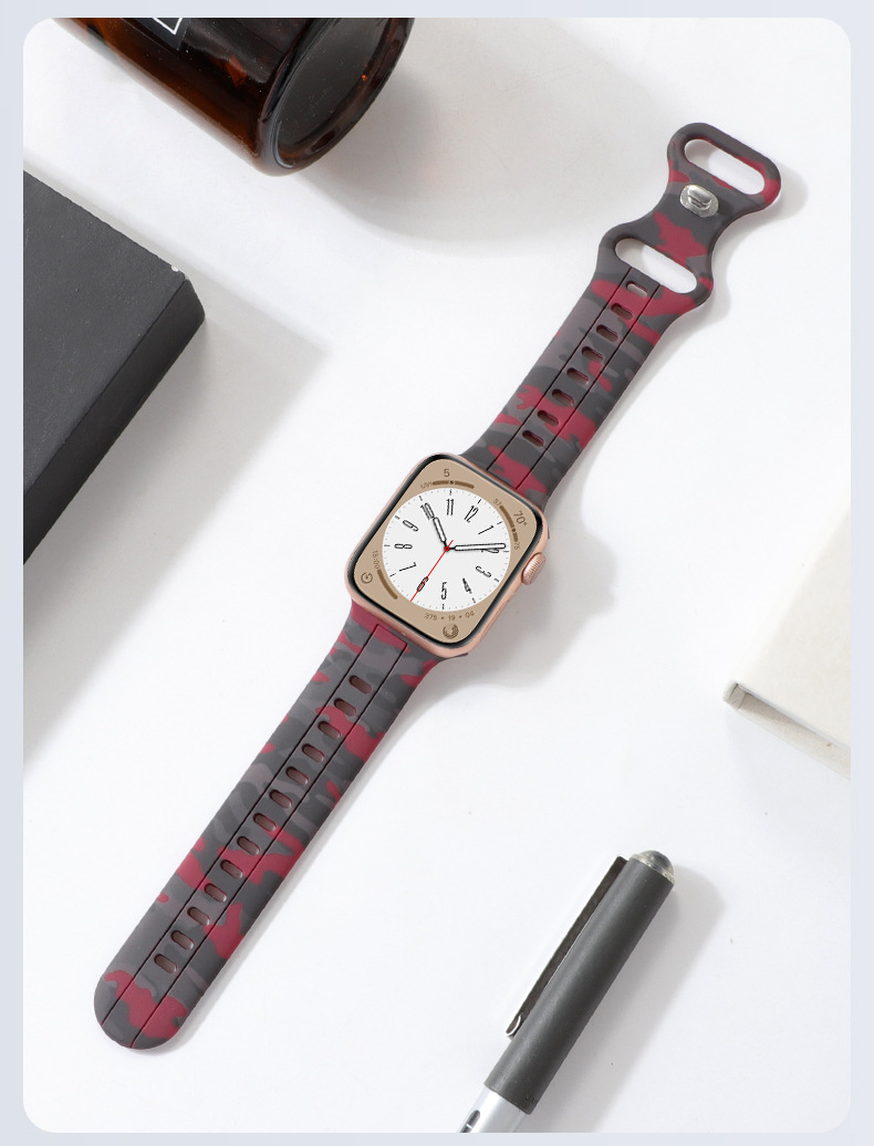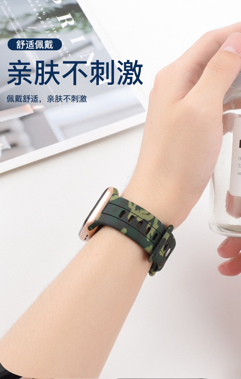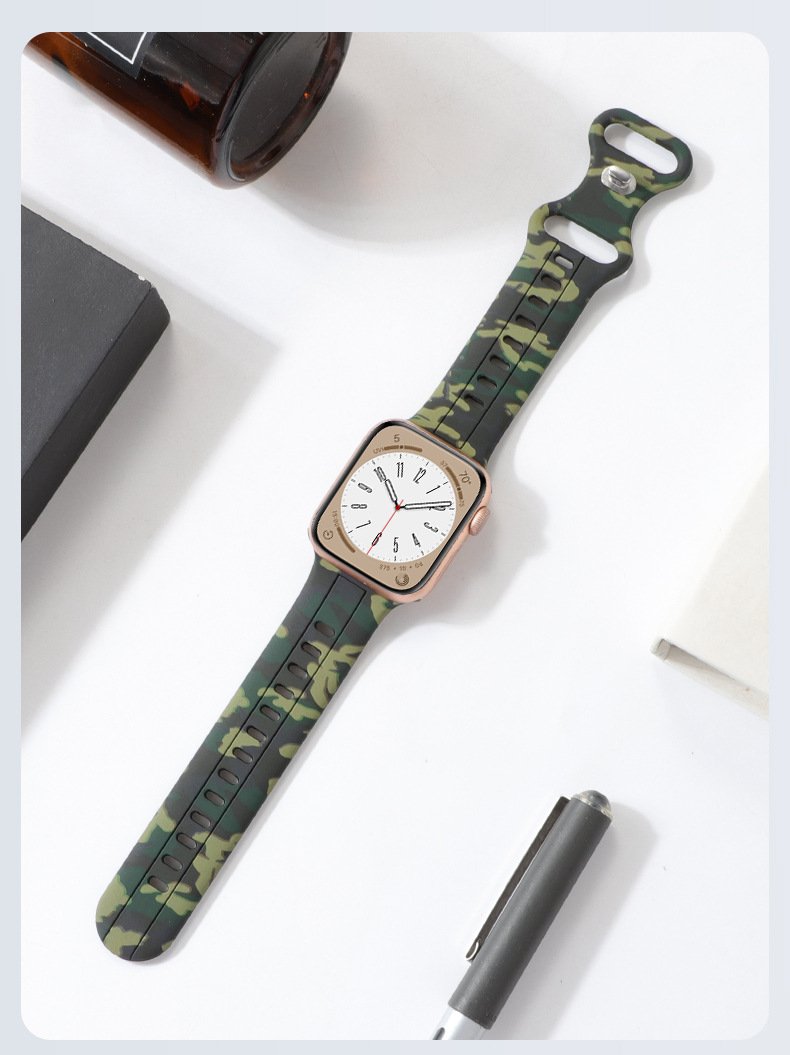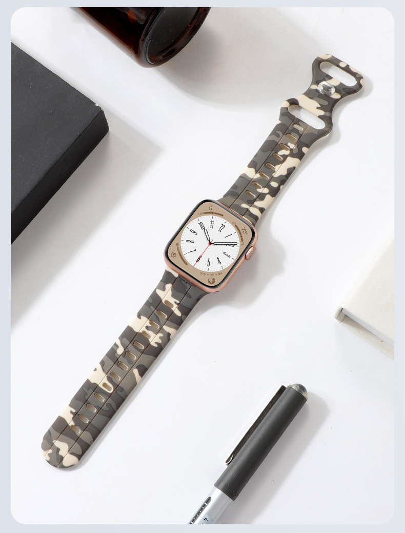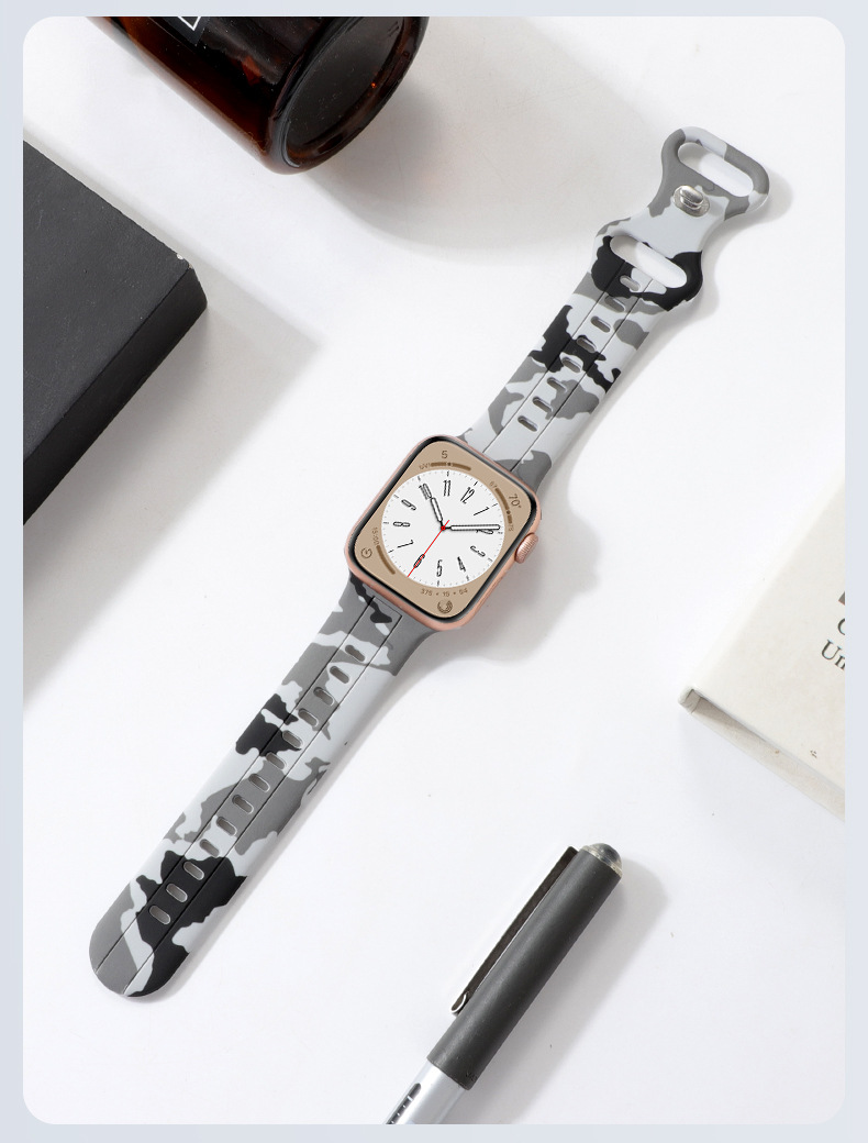 Aplicable a Apple Watch8 generación Ultra 34567SE silicona ocho caracteres hebilla camuflaje correa de silicona