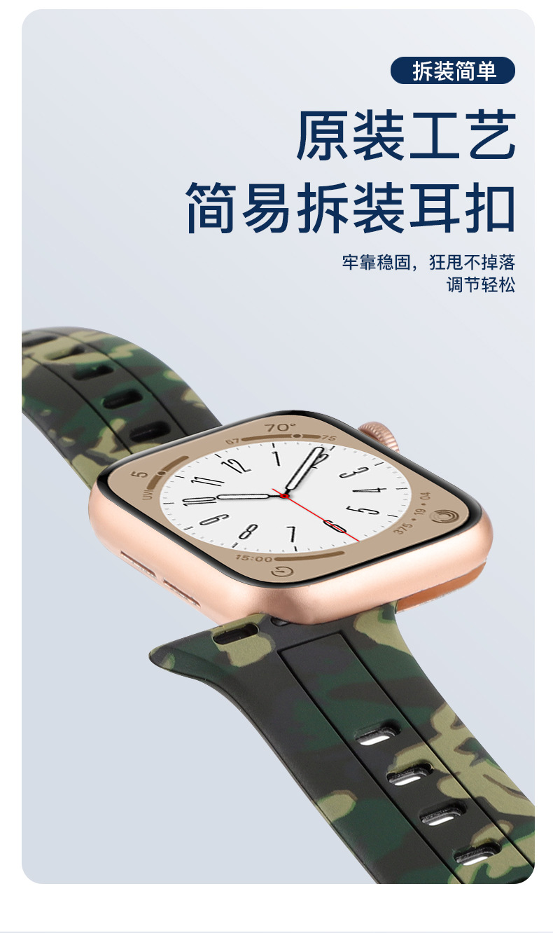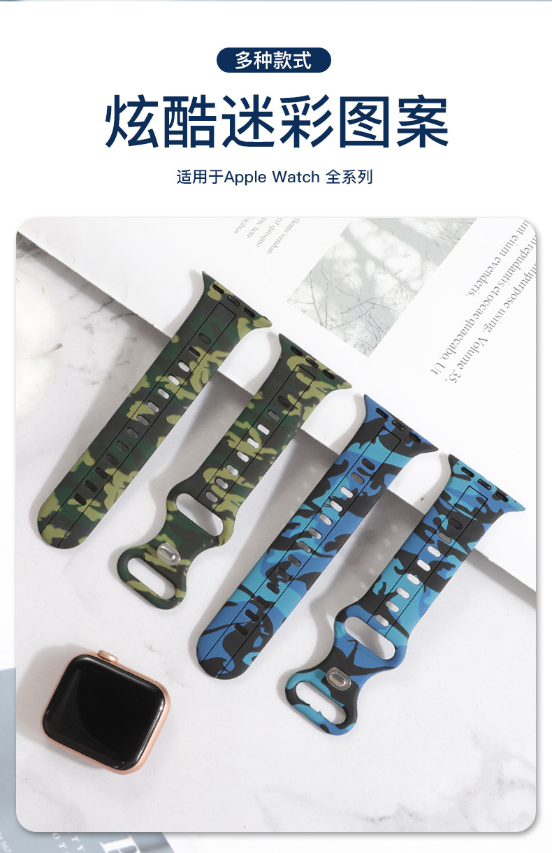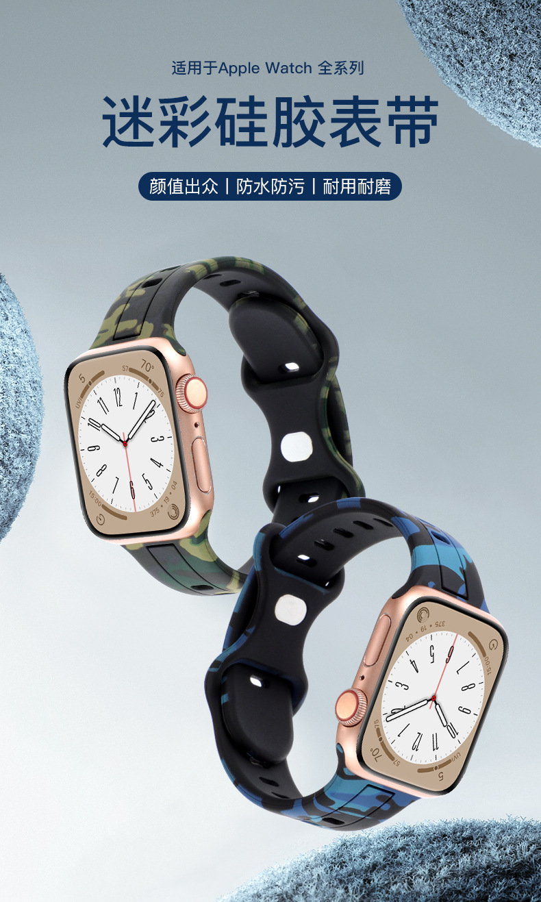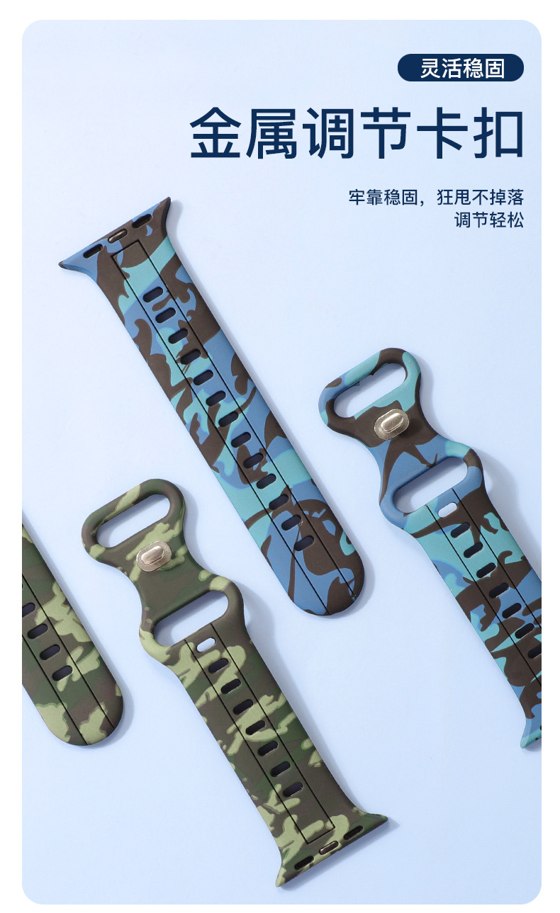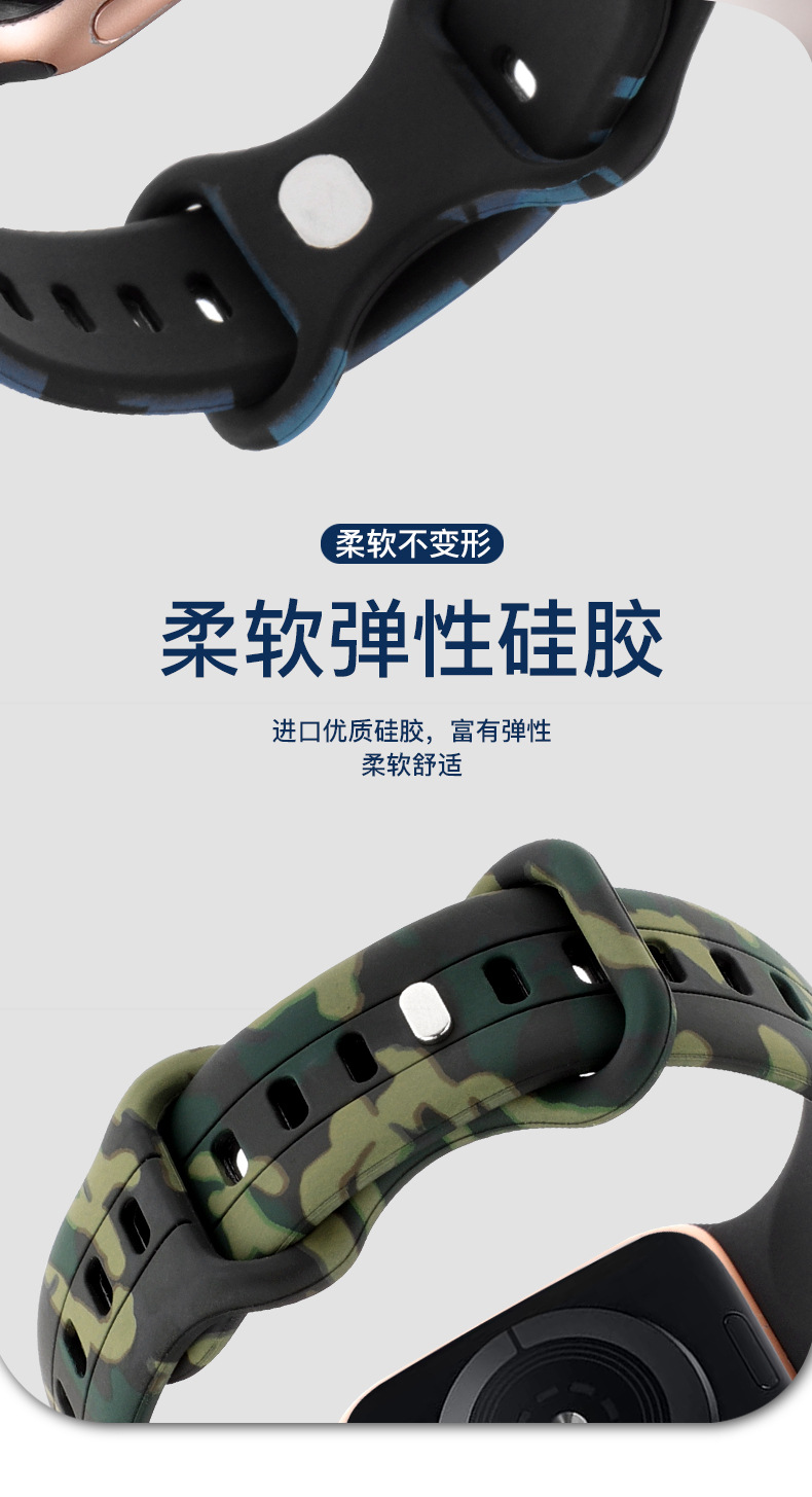 Aplicable a Apple Watch8 generación Ultra 34567SE silicona ocho caracteres hebilla camuflaje correa de silicona
