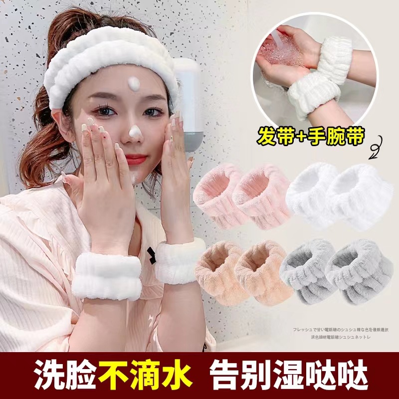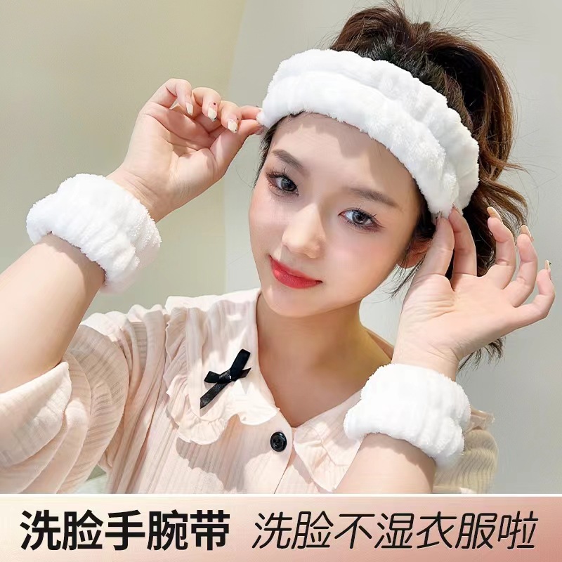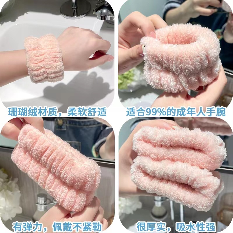 Transfronterizo nueva felpa color sólido banda de pelo lavado de cara correa de muñeca deportes pulsera banda de pelo impermeable Lavado de Manos pulsera para mujeres