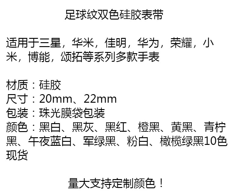 Adecuado para Samsung Galaxy Watch Huawei Watch GT Fútbol patrón bicolor 20/22mm Correa universal