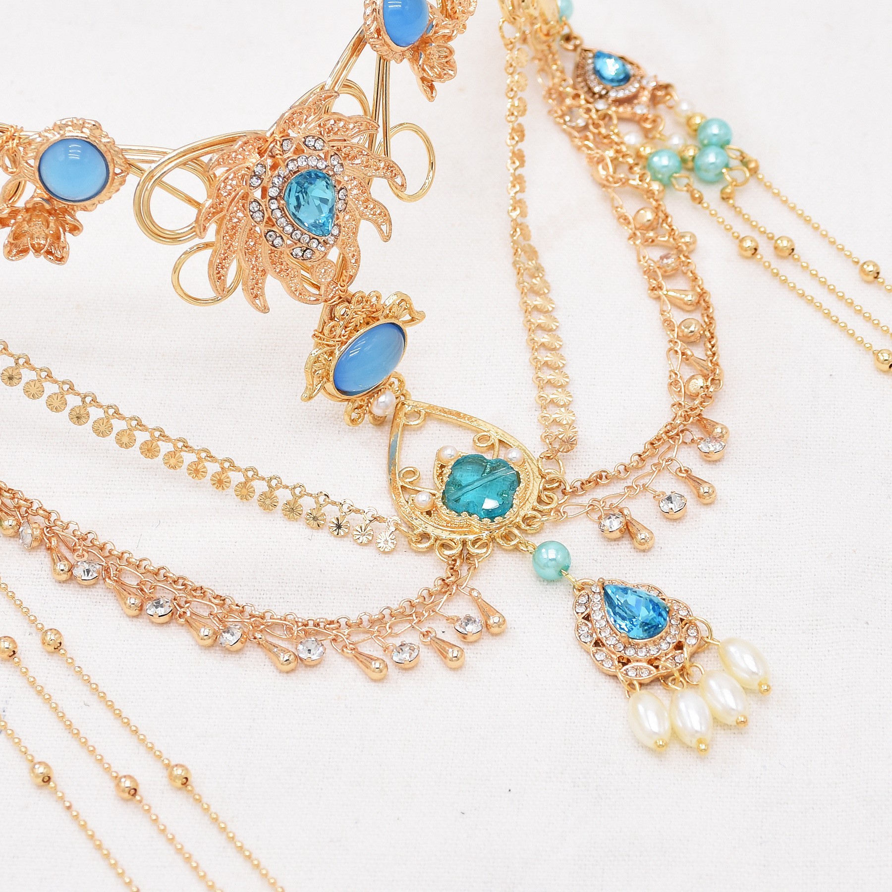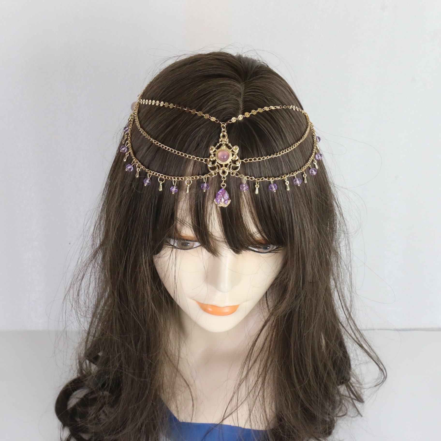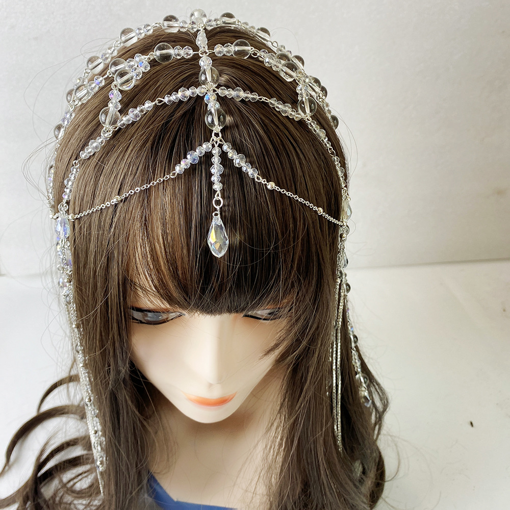 Cristal gota de agua colgante headwear CADENA DE LA frente europea y americana Cadena de diamantes accesorios para el cabello cadena de la cabeza banda de pelo étnico bohemio