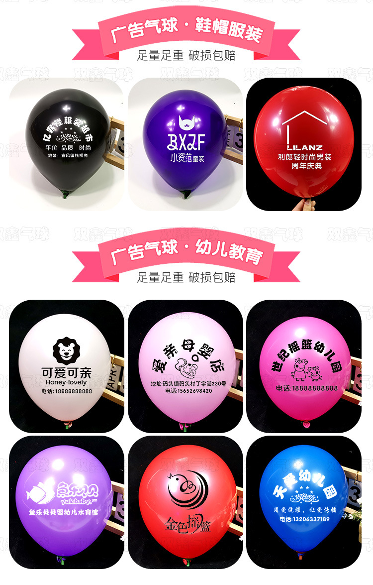 Venta directa de fábrica Globos publicitarios Logotipo personalizado Impresión gruesa Código QR Promoción de jardín de infantes Apertura de bodas