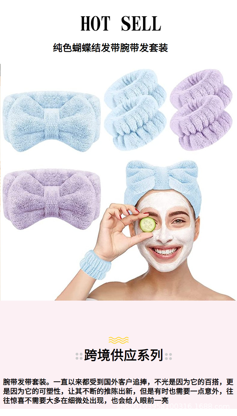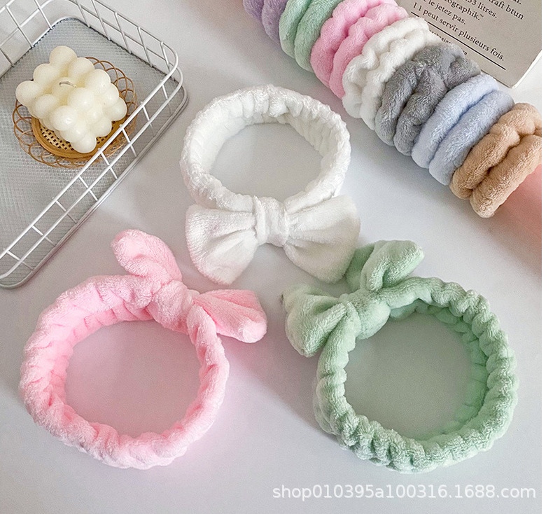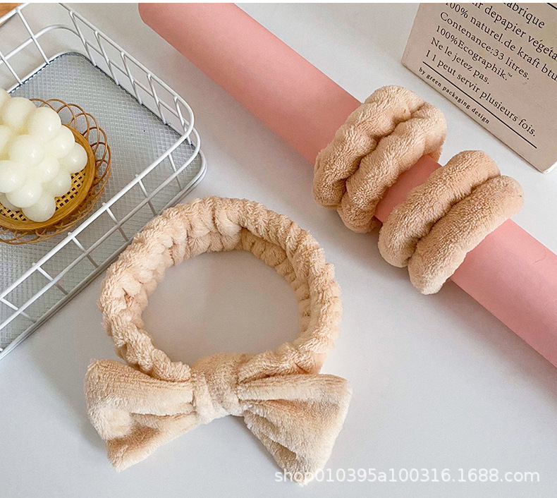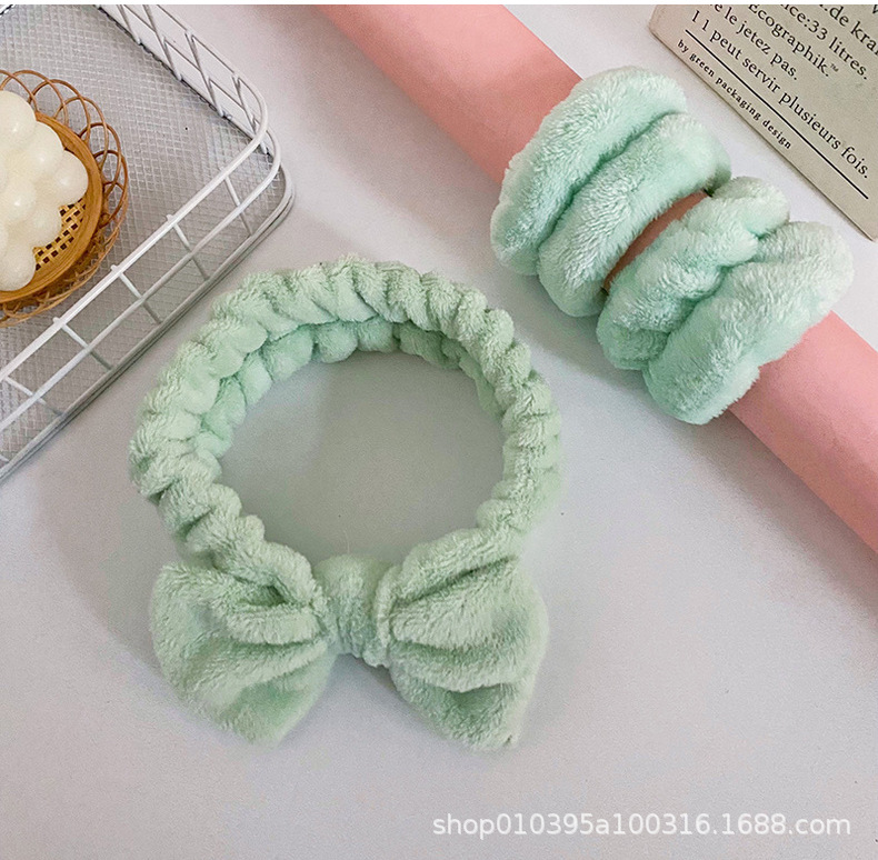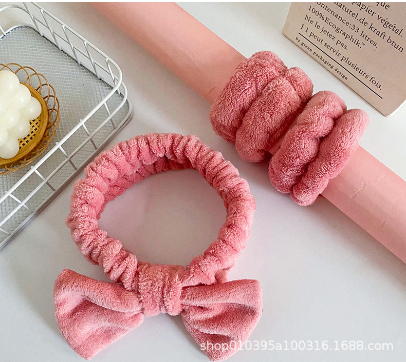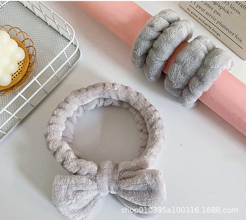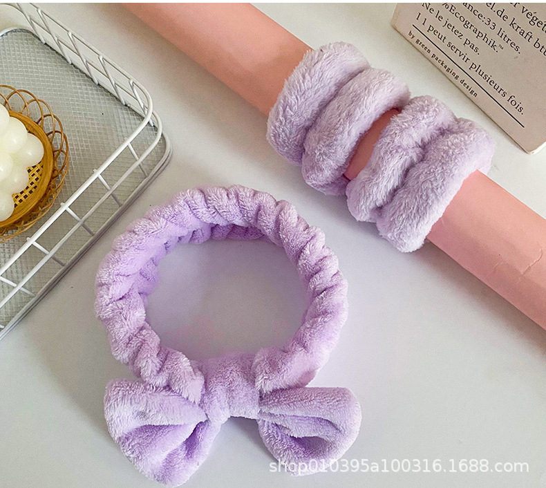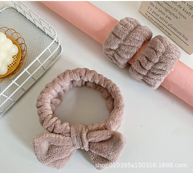 Europa y América franela arco banda de pelo femenino lavado de cara maquillaje diadema correa de muñeca traje pulsera de felpa a prueba de humedad artefacto