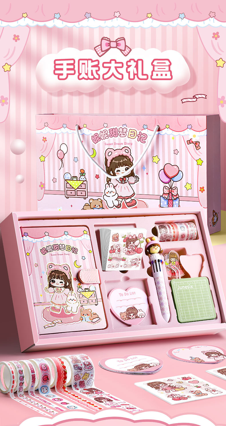Mano cuenta traje caja de regalo libro de mano chica lindo libro de mano niños papelería chica cuaderno pegatinas bolsa de regalo