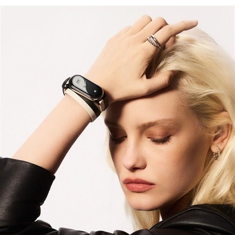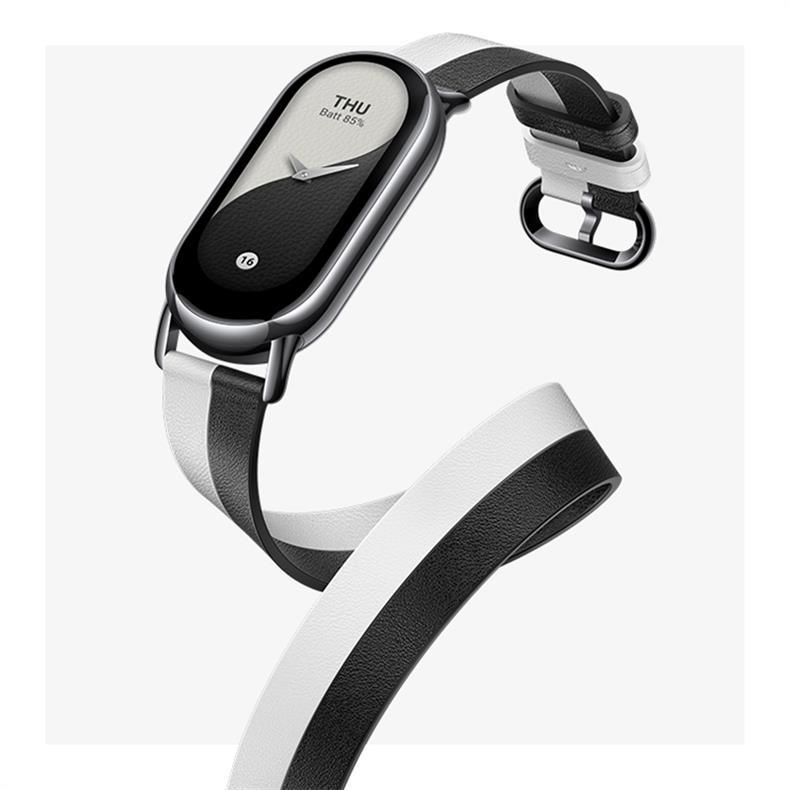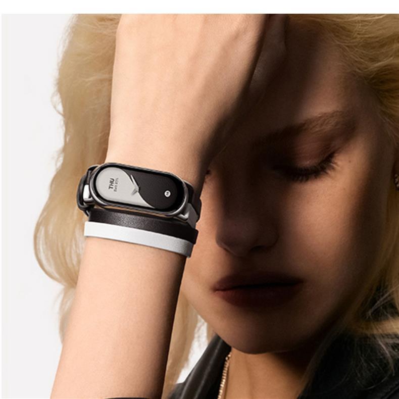 Adecuado para mi pulsera 8 correa de cuero genuino correa de muñeca de doble anillo blanco y negro deportes inteligentes de ocho generaciones versión NFC hombres y mujeres creativos