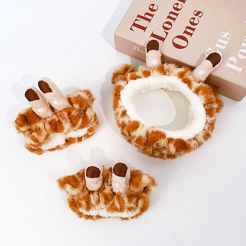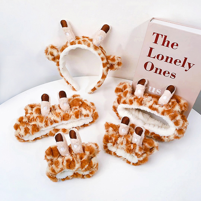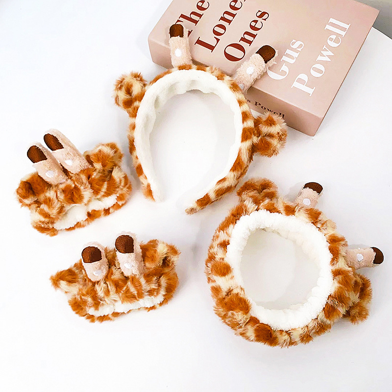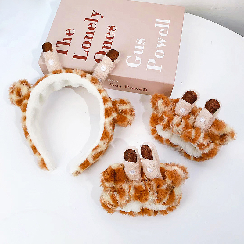 Diseño Original de dibujos animados jirafa diadema lavado de cara lindo banda de pelo de dibujos animados Animal correa de muñeca impermeable