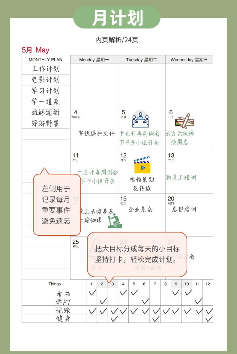 2025 secretaria de trabajo plan de mes A4 libro de gestión del tiempo libro de tarjetas manual de eficiencia LOGOTIPO de bronceado personalizado