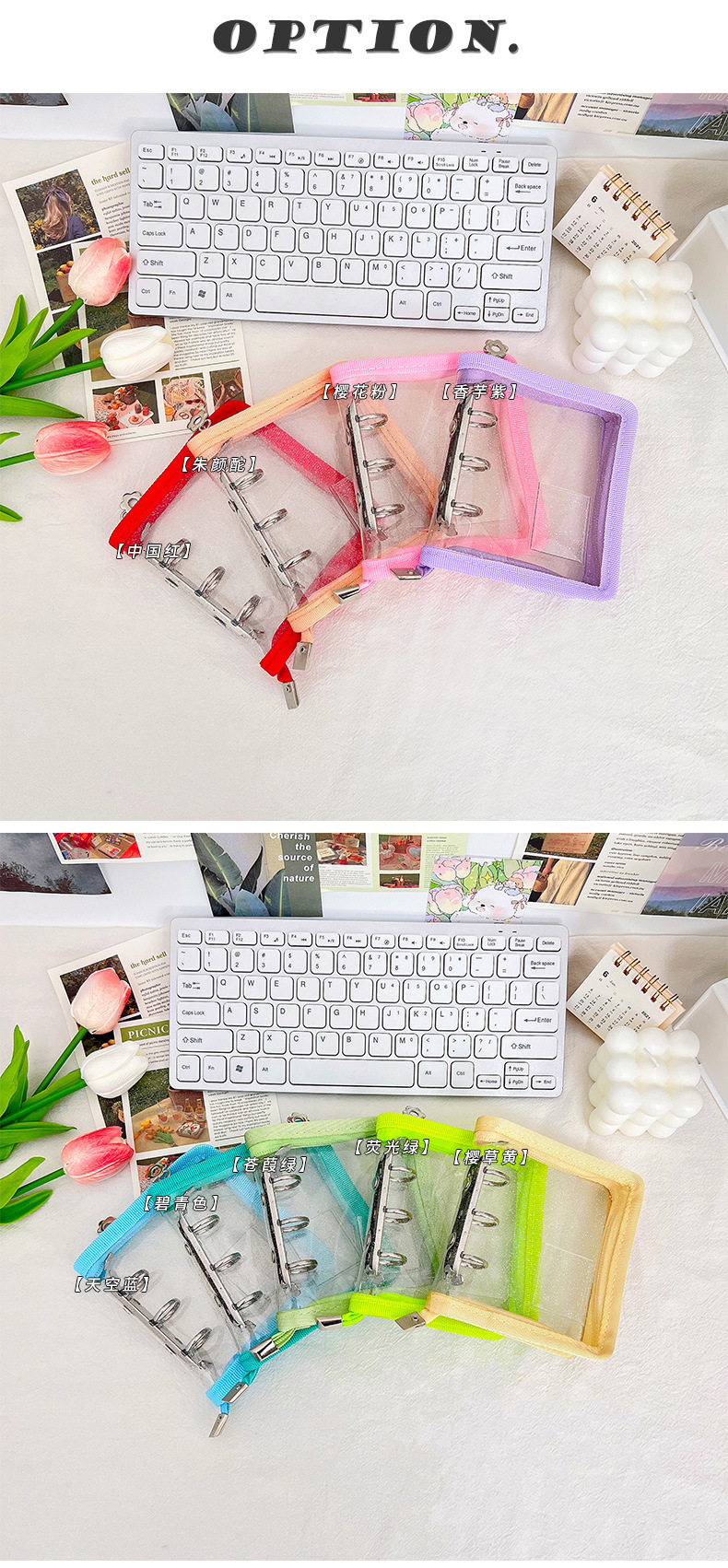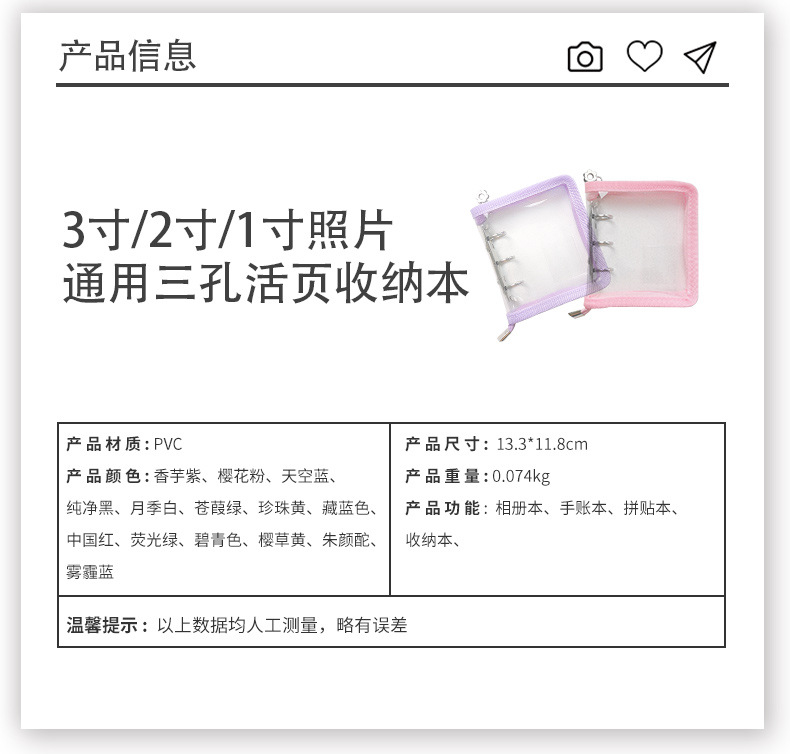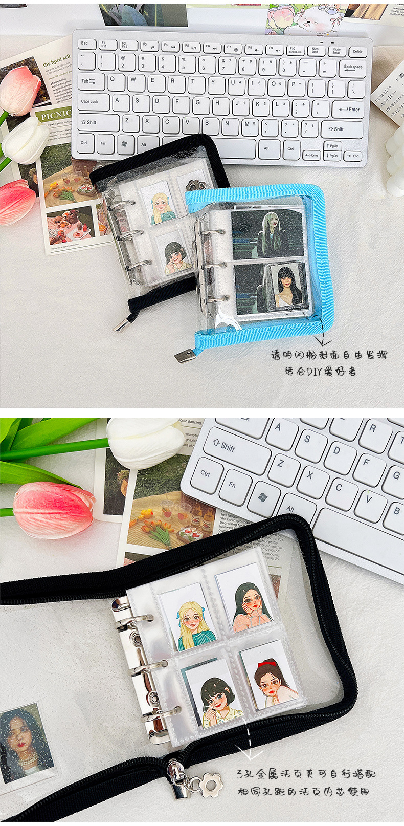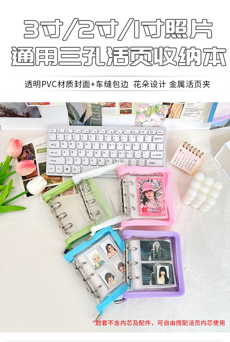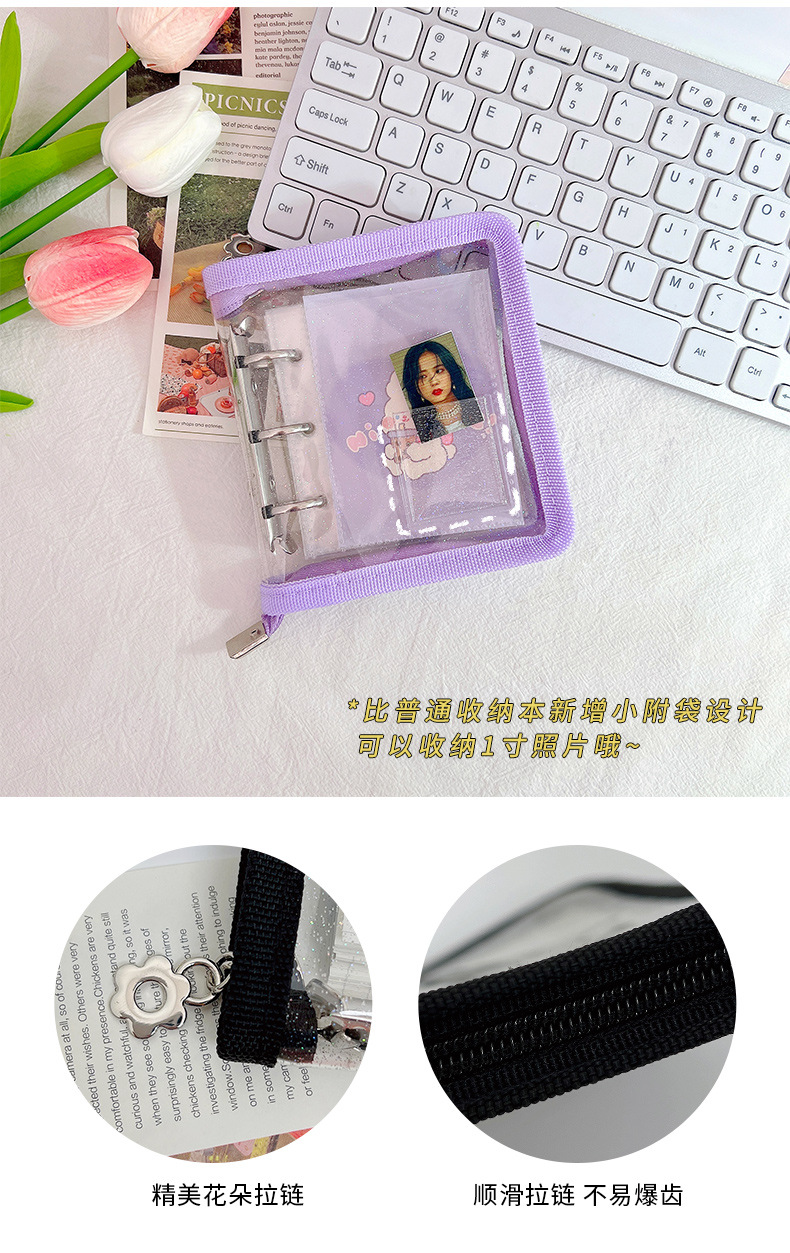Mini cremallera de color concha de libro de hojas sueltas 3 agujeros de metal clip de hojas sueltas PVC mano libro chica cuaderno al por mayor