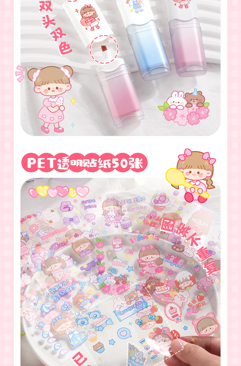 Linda chica diario libro traje caja de regalo chica pegatina cinta material herramienta libro Niños libro de hojas sueltas conjunto completo