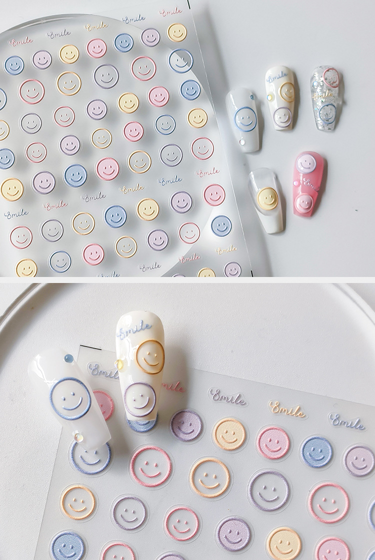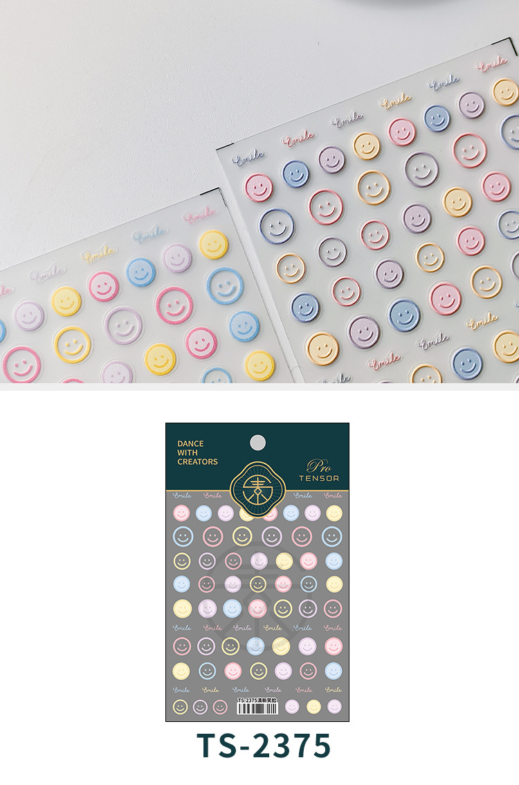 TENSOR tridimensional de dibujos animados delgada uñas duras pegatinas adhesivas uñas pegatinas TS-2375 de joyería fresca cara sonriente