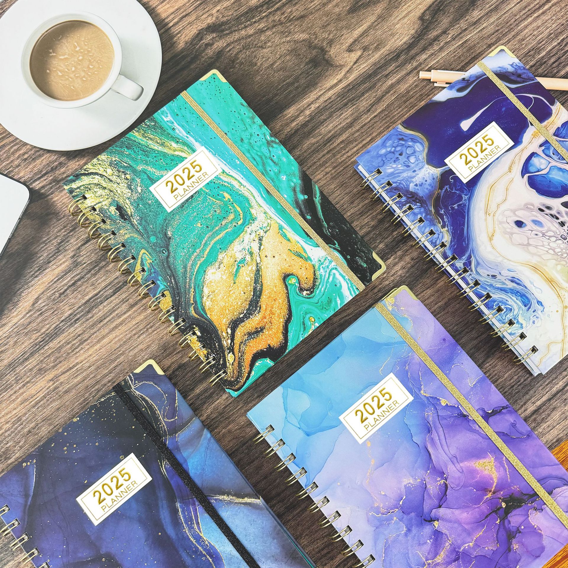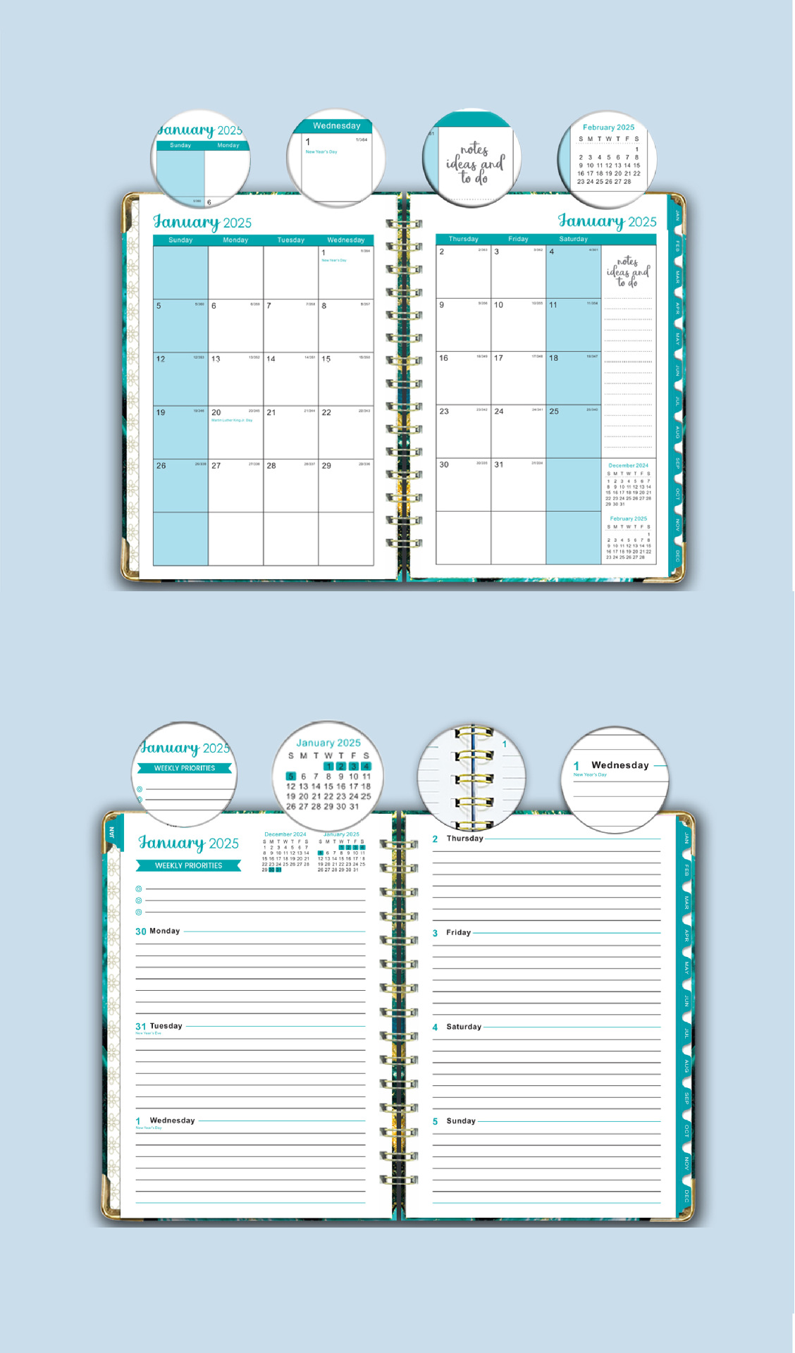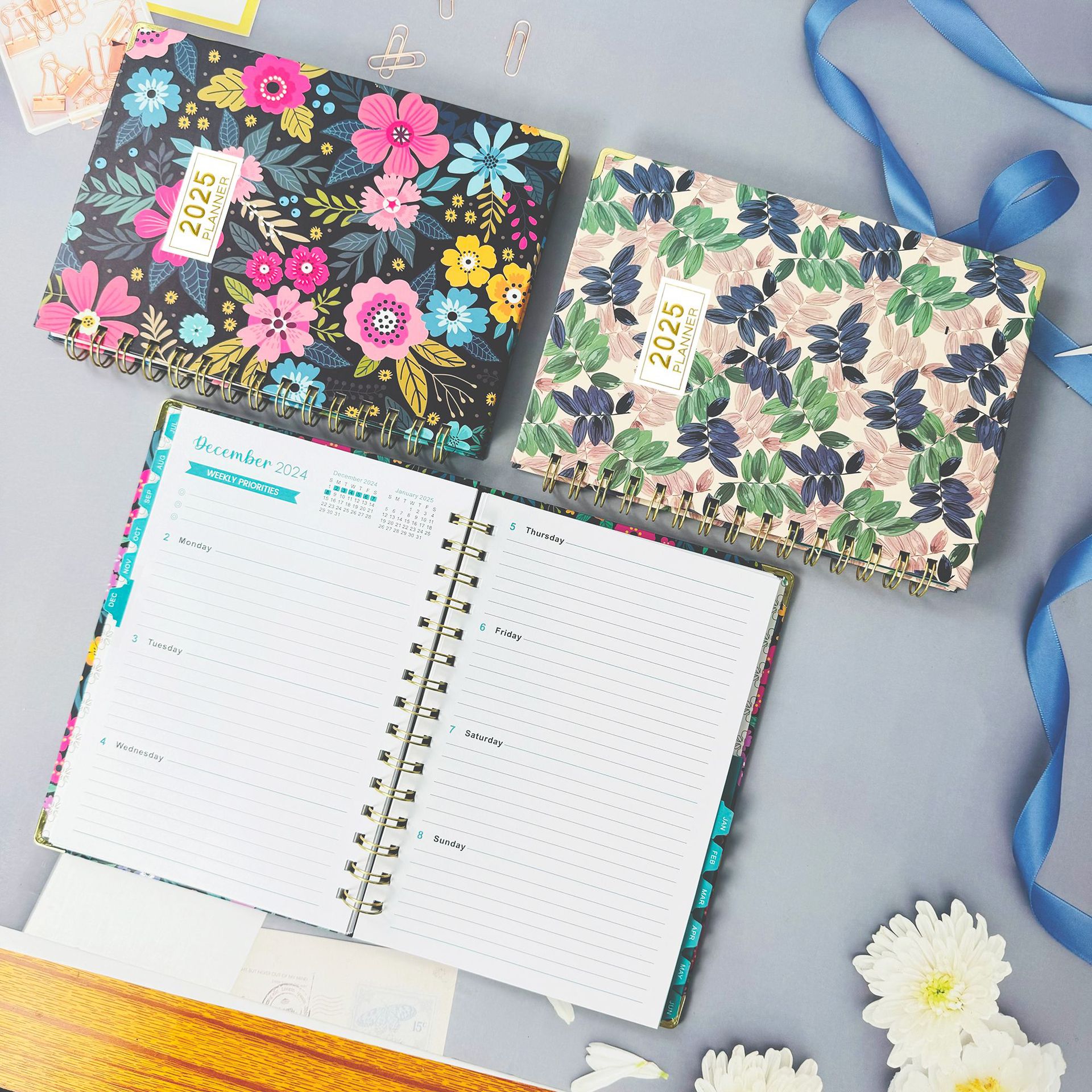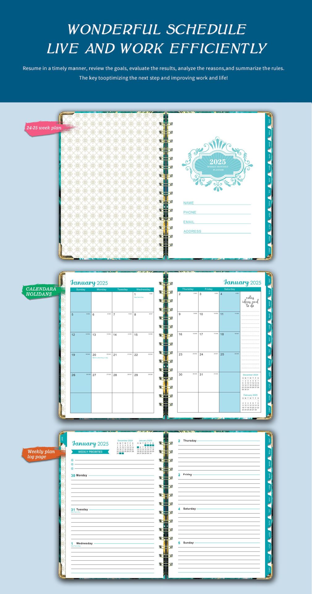 Versión en inglés transfronteriza 2025 Bloc de notas A5 Libro de círculo de doble línea Libro de planificación semanal en inglés Libro de planificación de horarios de gestión