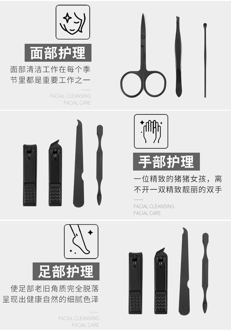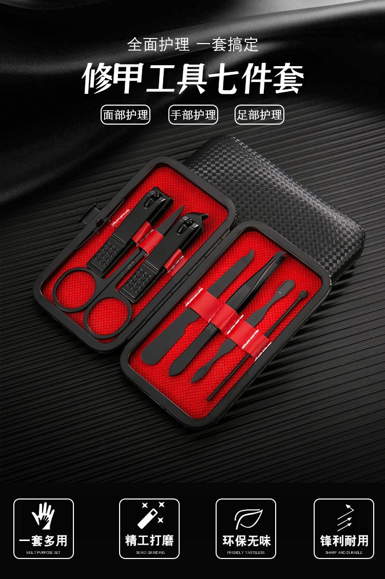 Nuevo avanzado de acero inoxidable cortaúñas traje de 7 piezas cortaúñas pedicura cuchillo herramientas de uñas conjunto completo