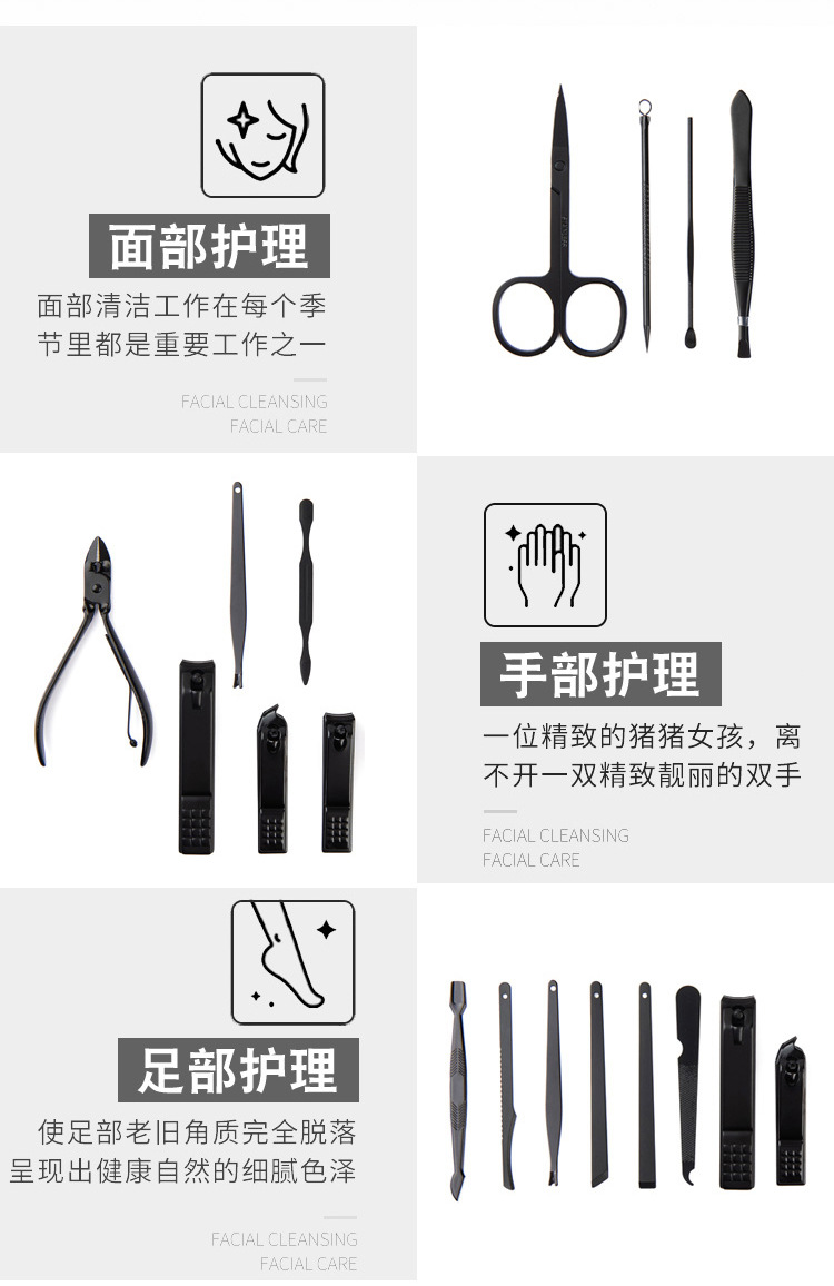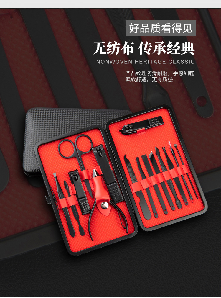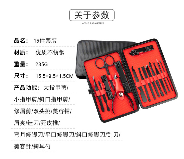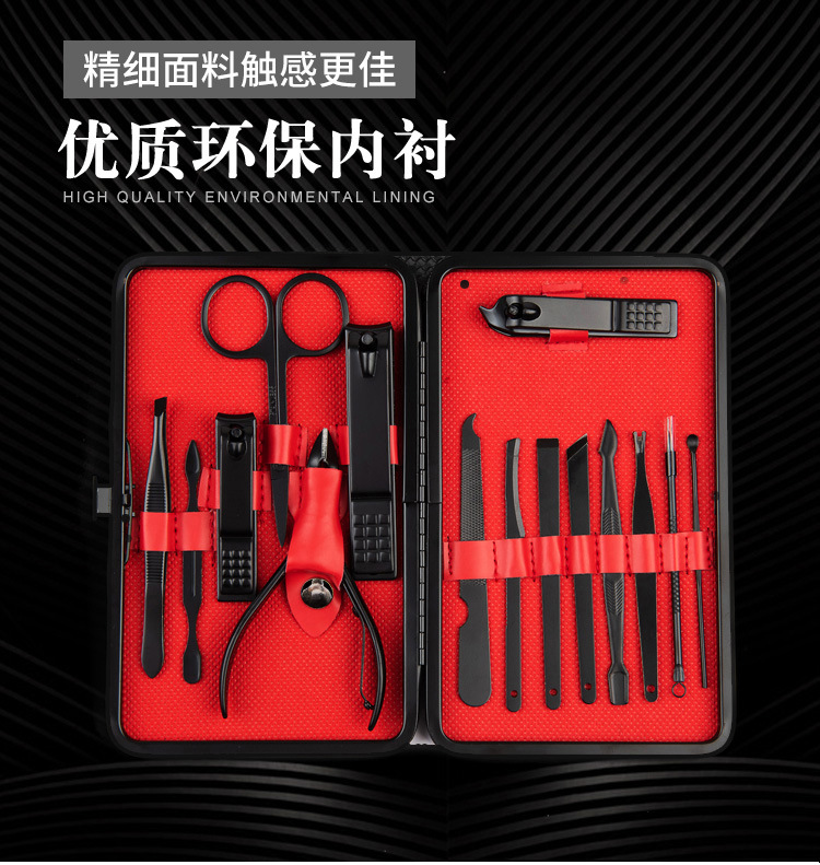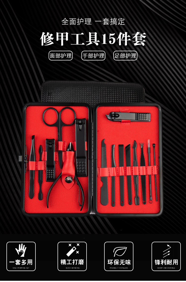 Fabricante Juego de tijeras para uñas de acero inoxidable Juego de 15 piezas Cuchillo de manicura Pinza de belleza Herramientas de manicura Paquete fino