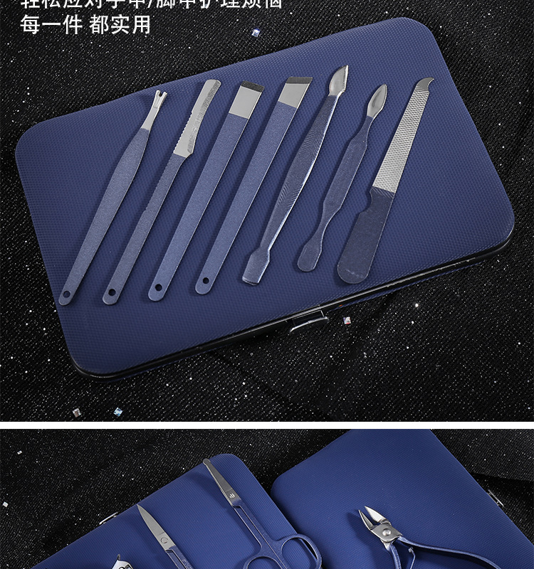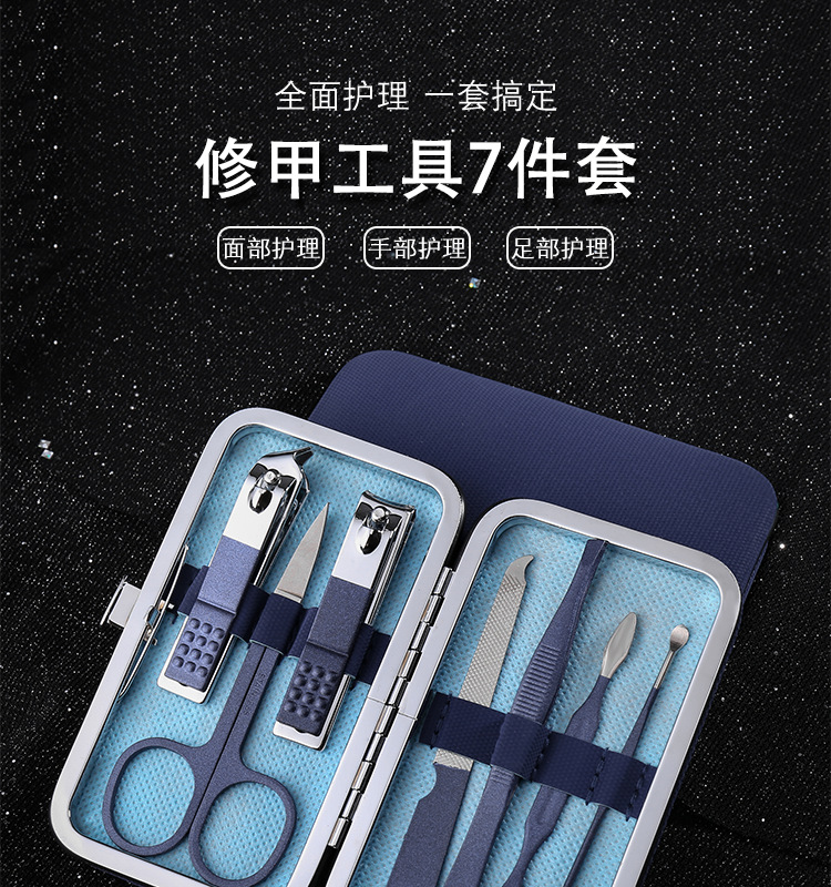 Zun TIMÓN DE ACERO INOXIDABLE traje de uñas 7-piece set logo pedicura tijeras manicura belleza alicates manicura Caja de Herramientas