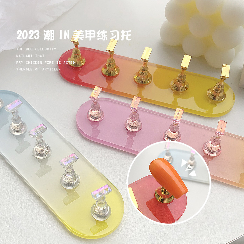 Gradiente de uñas Aurora ovalada soporte de práctica soporte de uñas largo oro y plata soporte de uñas accesorios al por mayor