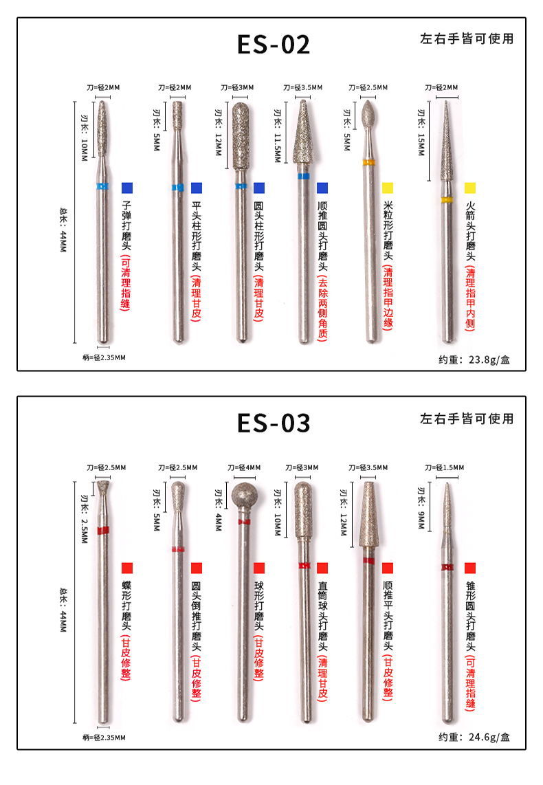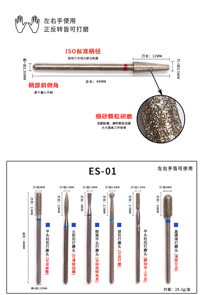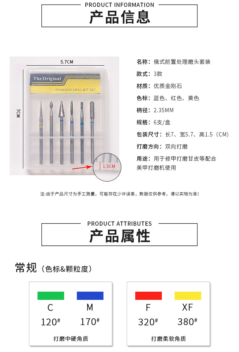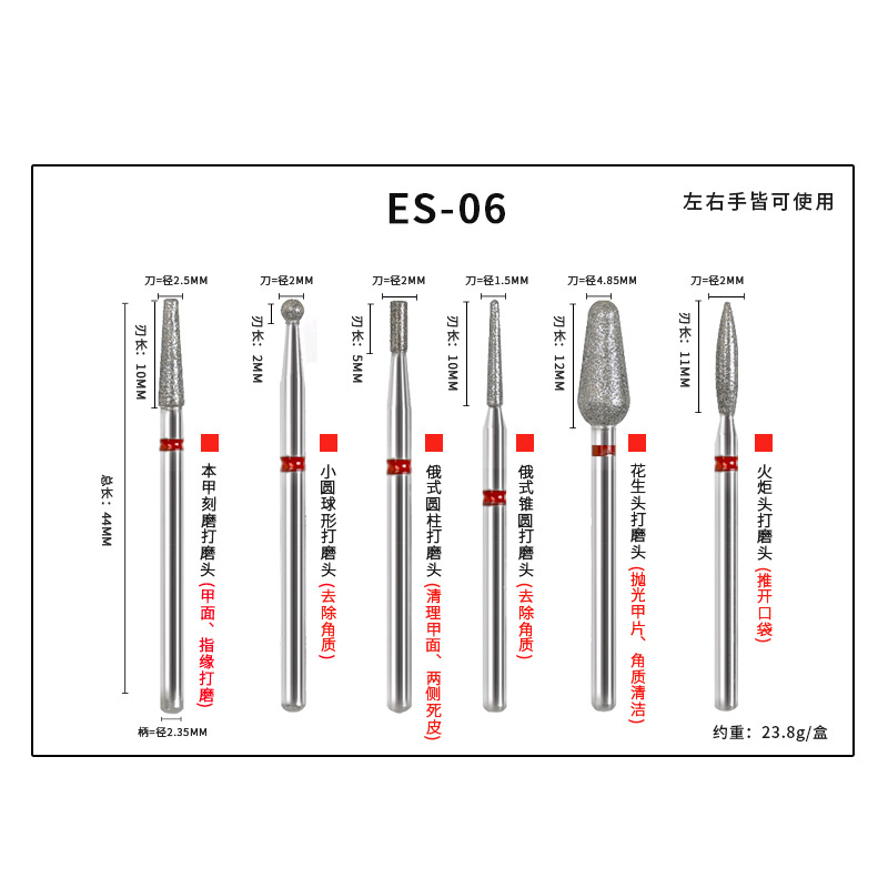Traje de cabeza de molienda de diamante ruso para uñas 6 traje de cabeza de molienda exfoliante de pretratamiento de alta calidad en caja