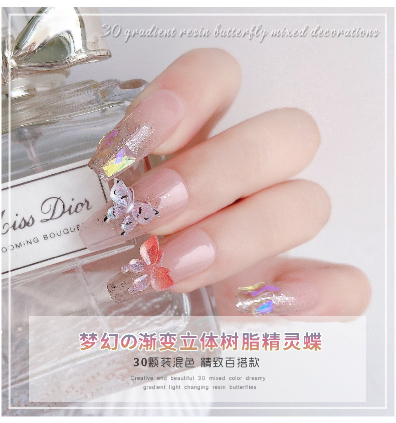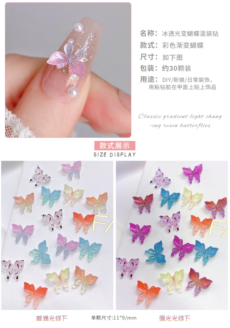 30 nail art luz cambiante resina tridimensional mariposa joyería nueva red rojo Hada color mágico mariposa estricta selección de uñas de diamantes decorativos