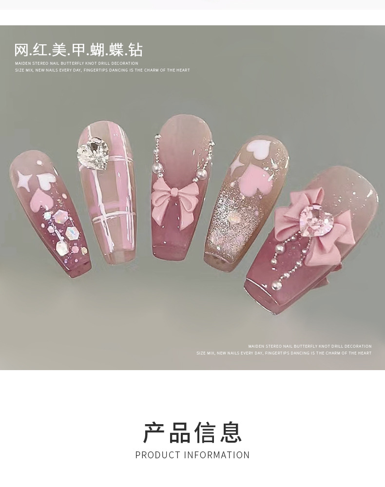 Super flash todo partido tridimensional pila diamante amor uñas accesorios al por mayor Celebridad en línea Guerrero arco accesorios de uñas