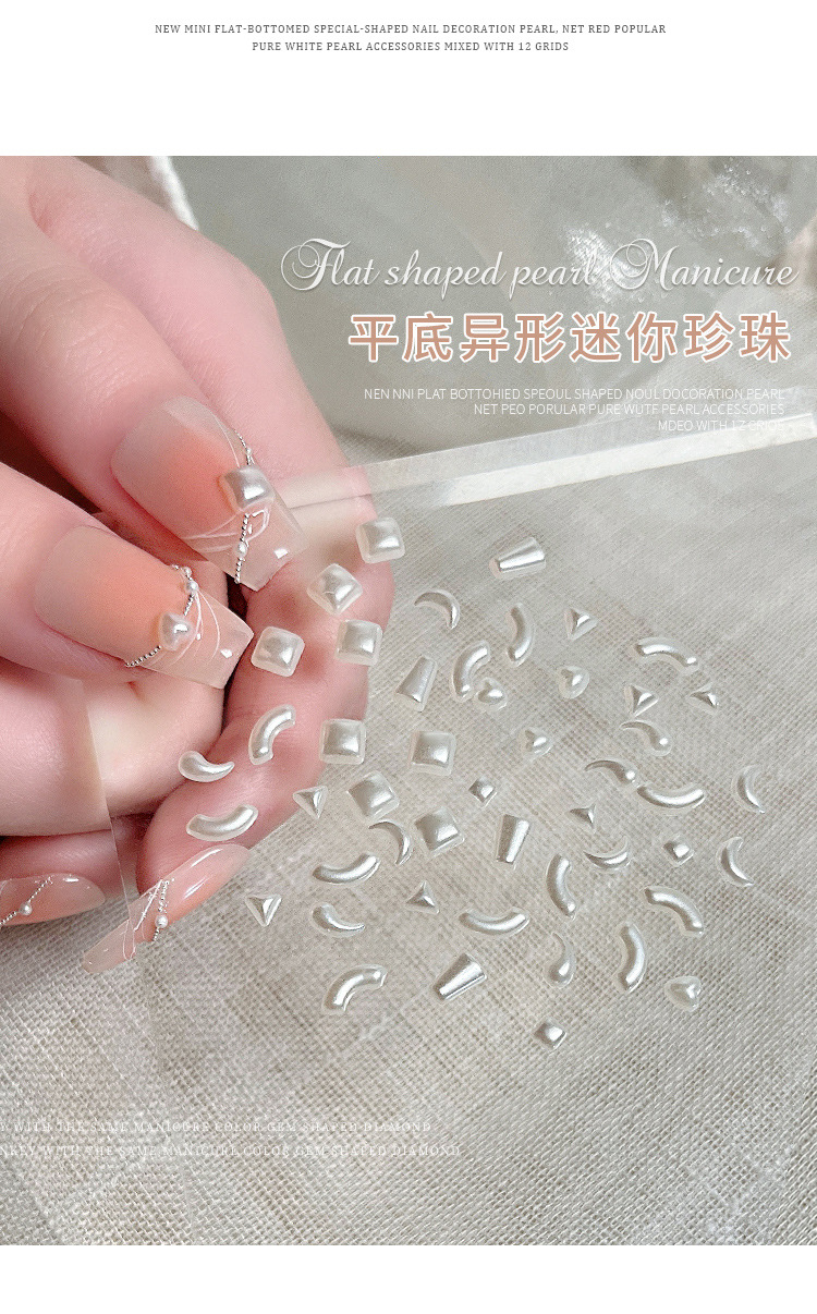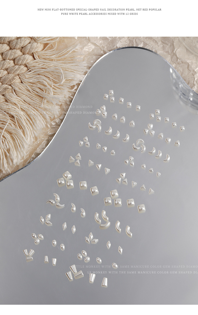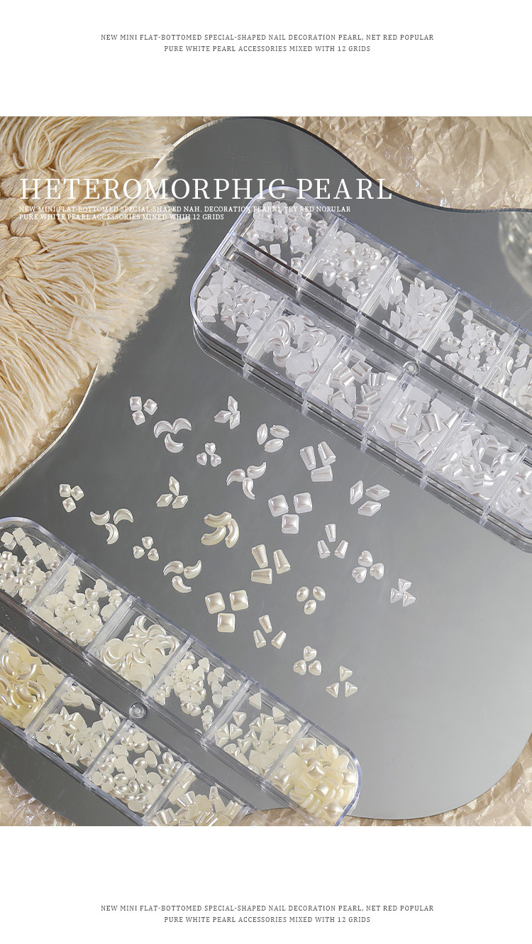 Joyería de uñas 12 rejilla plana especial en forma de perla resaltar mini decoración de uñas gota de agua amor paquete mixto al por mayor
