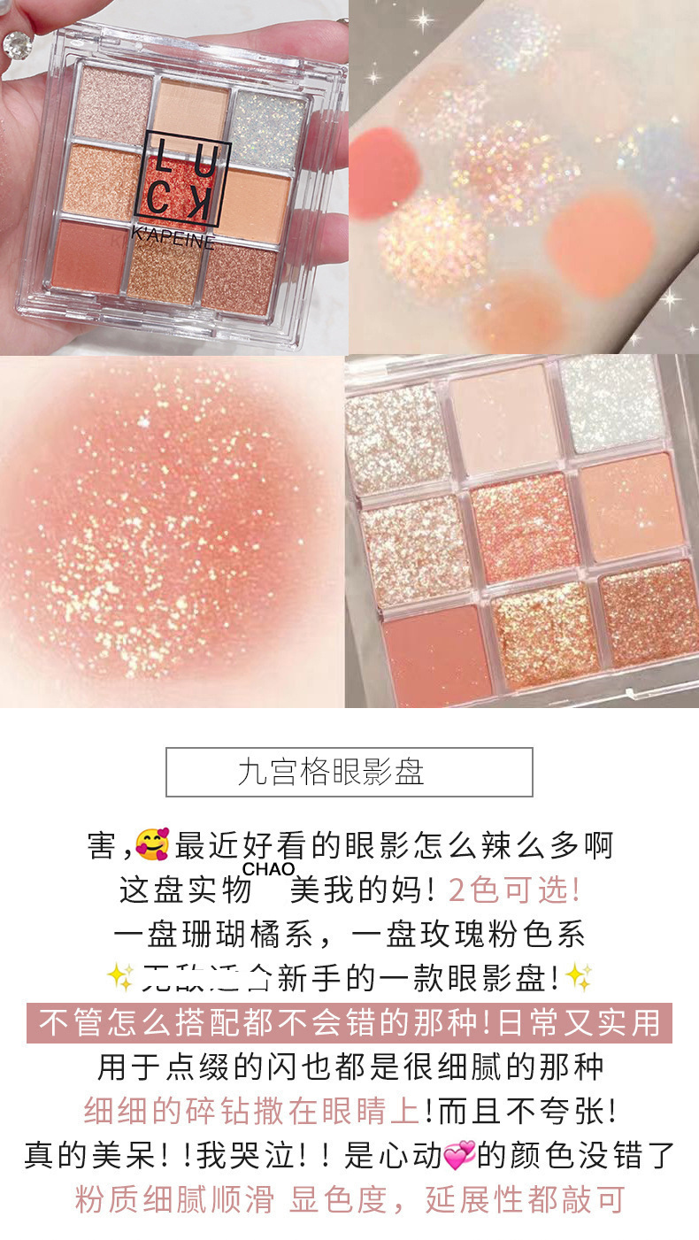 Palo de sombra de ojos transparente de nueve colores de Kappel, el mismo tipo de paleta de sombras de ojos de color tierra mate nacarado