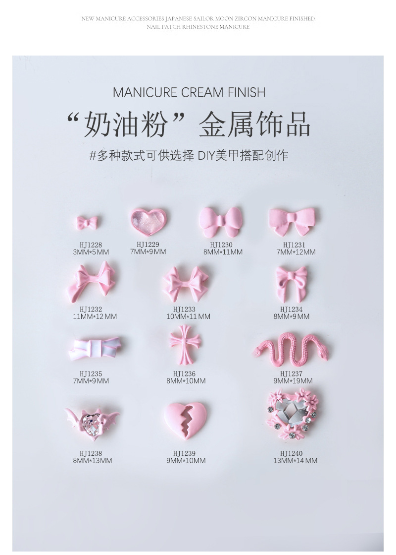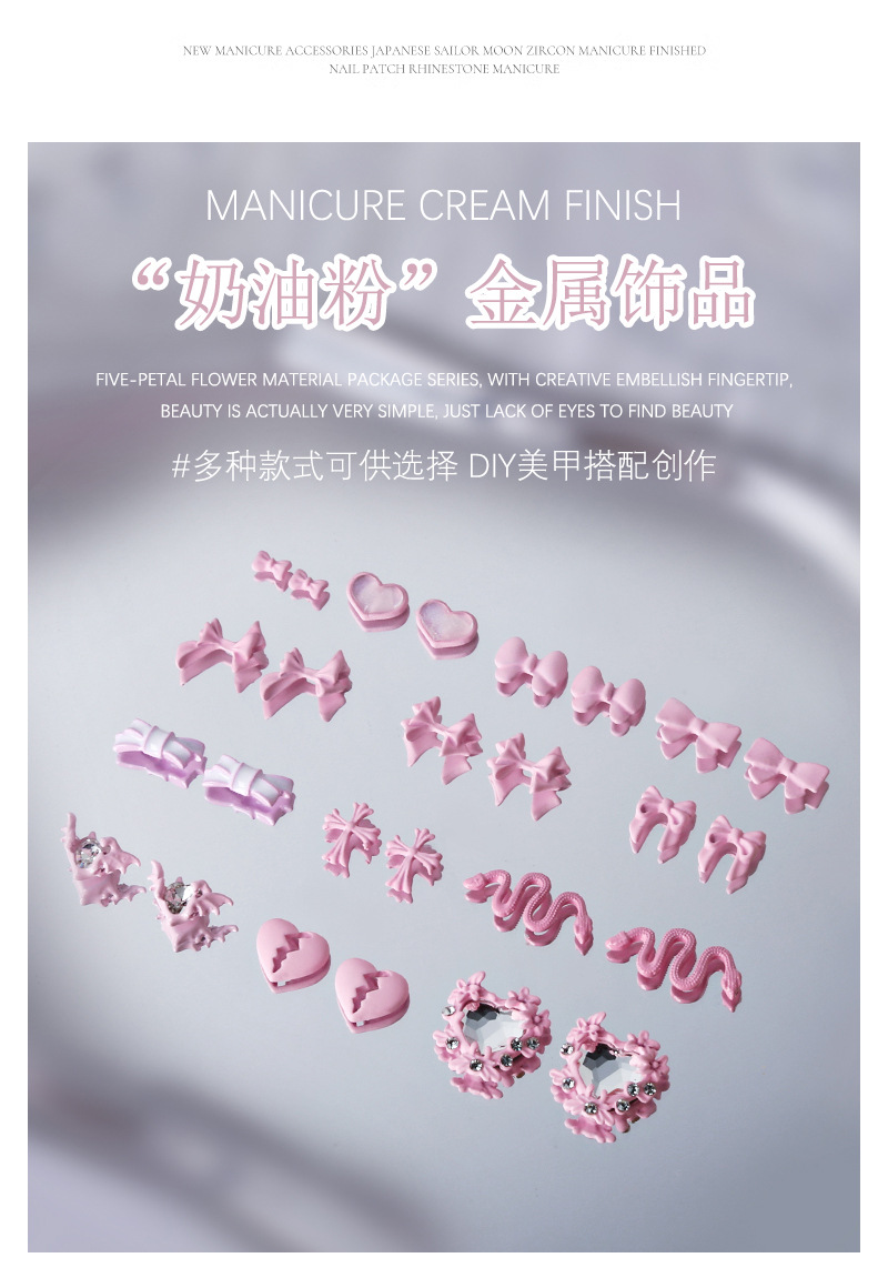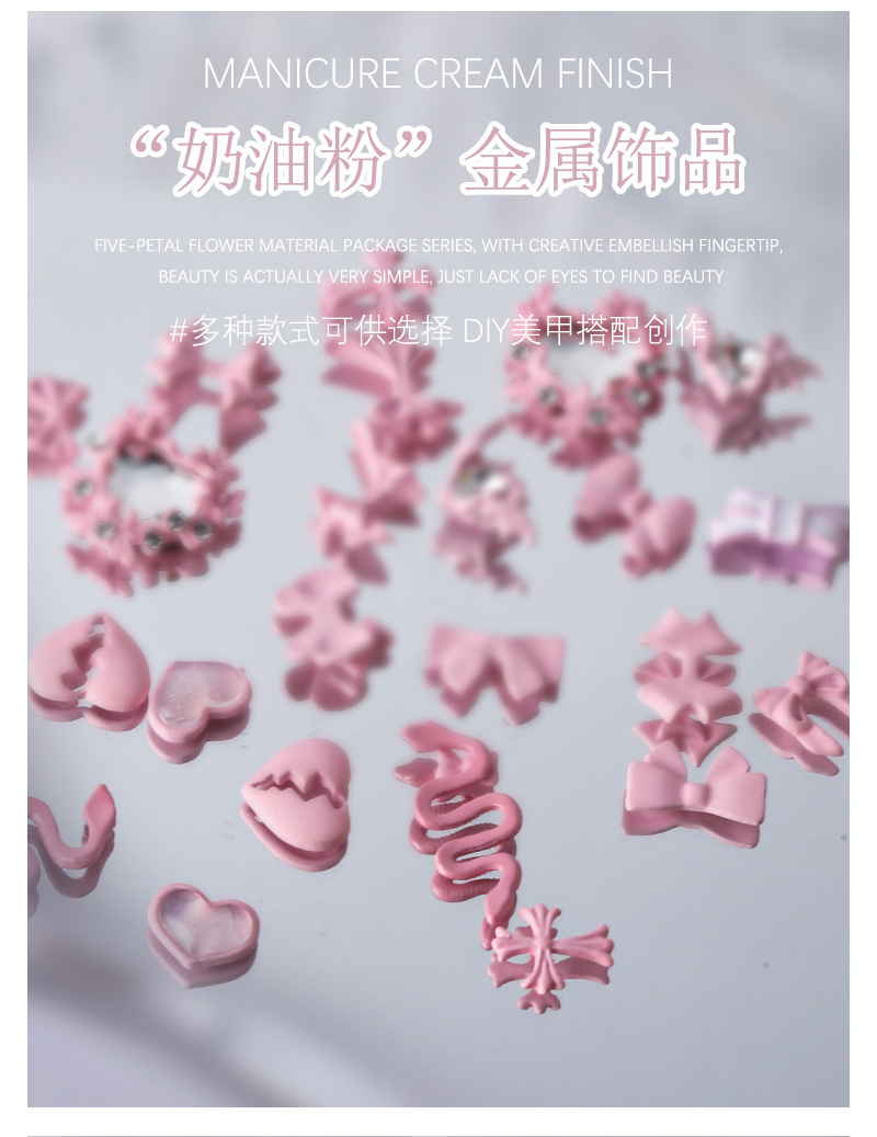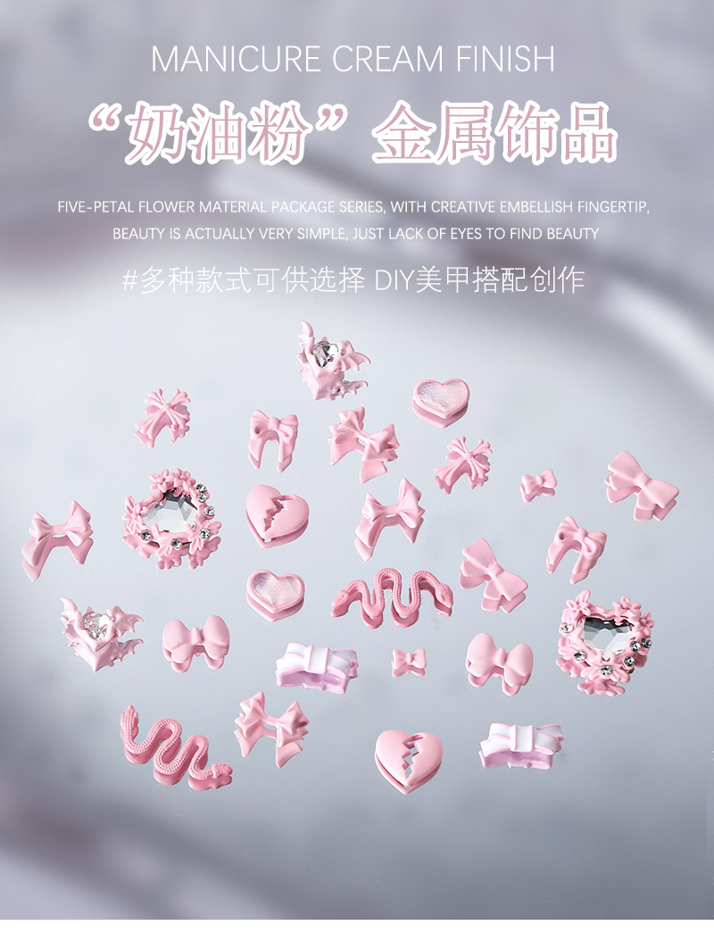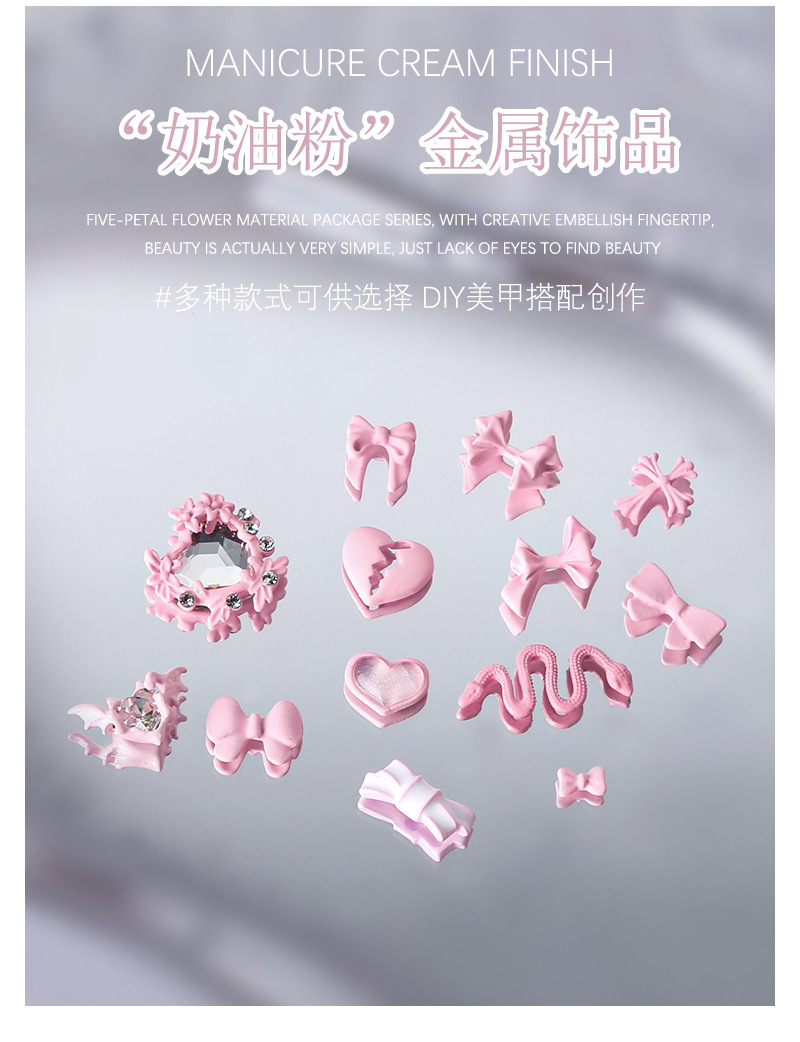 5-pieza joyería de uñas lindo amor cinta arco de ganchillo crema polvo metal decoraciones de uñas