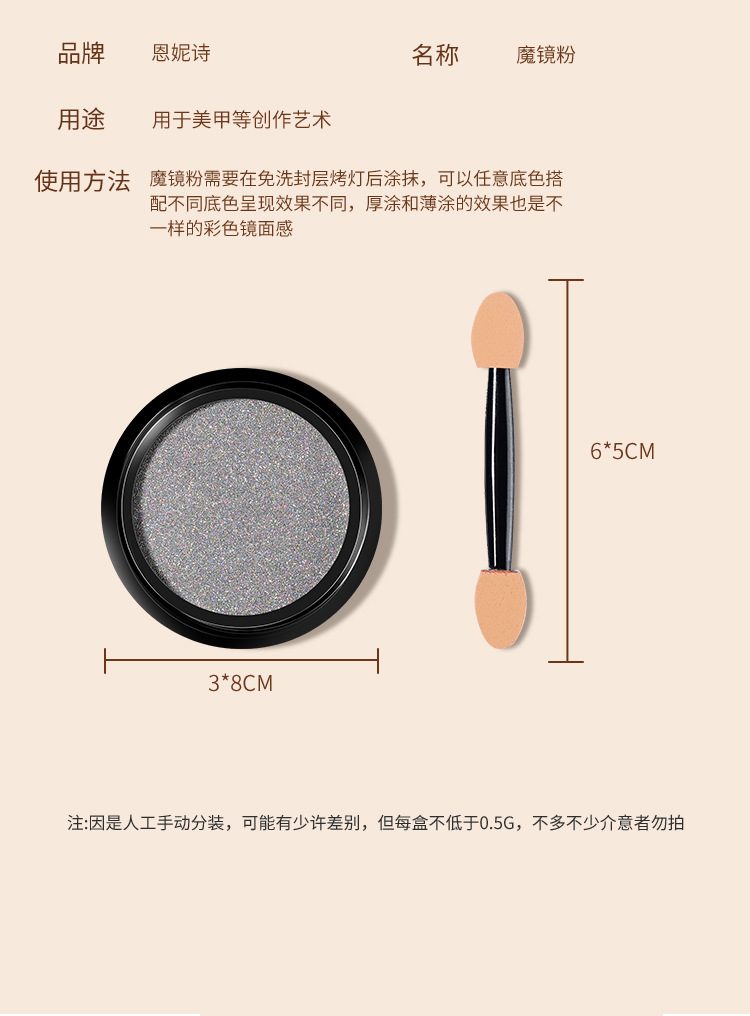 Polvo de espejo mágico de uñas esmalte de uñas pegamento gancho borde cubierto espejo polvo oro plata champán oro Aurora polvo fábrica al por mayor