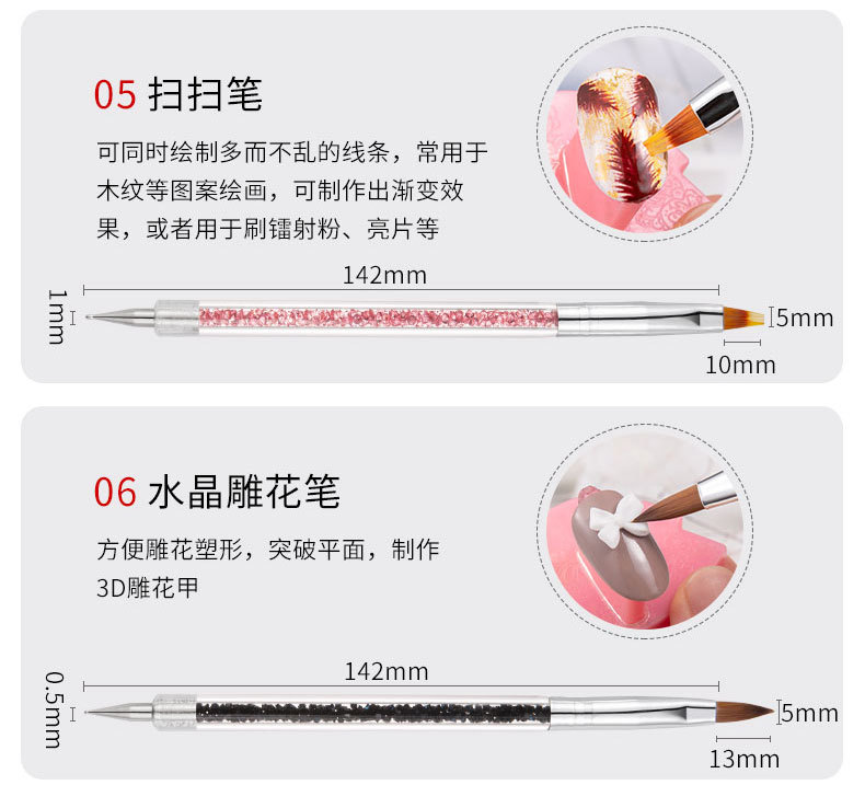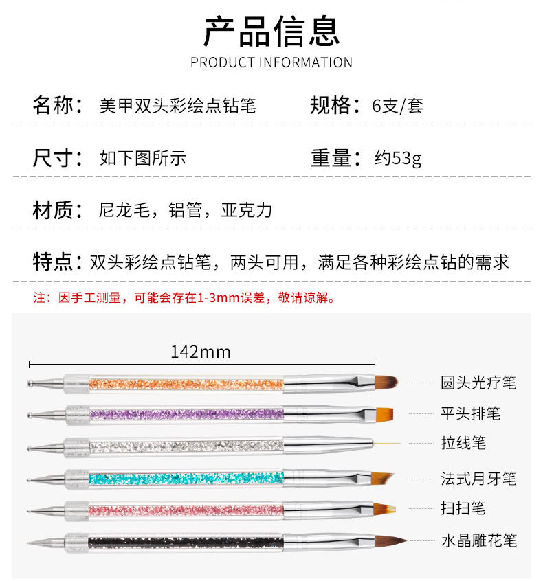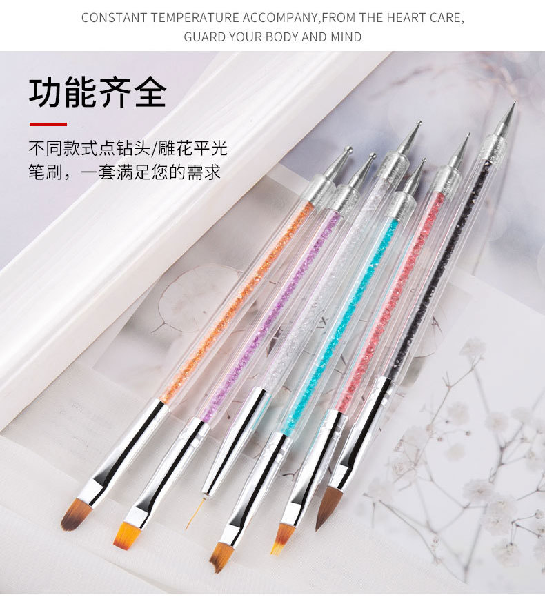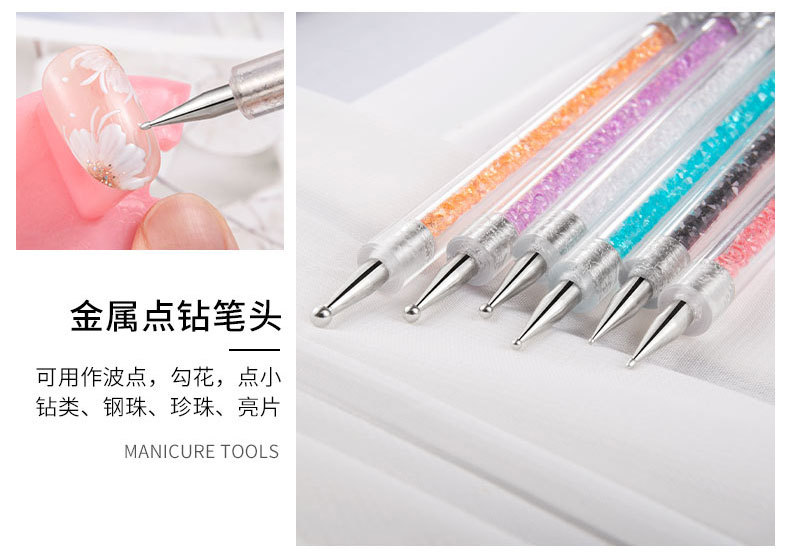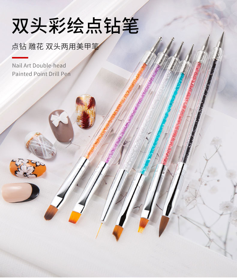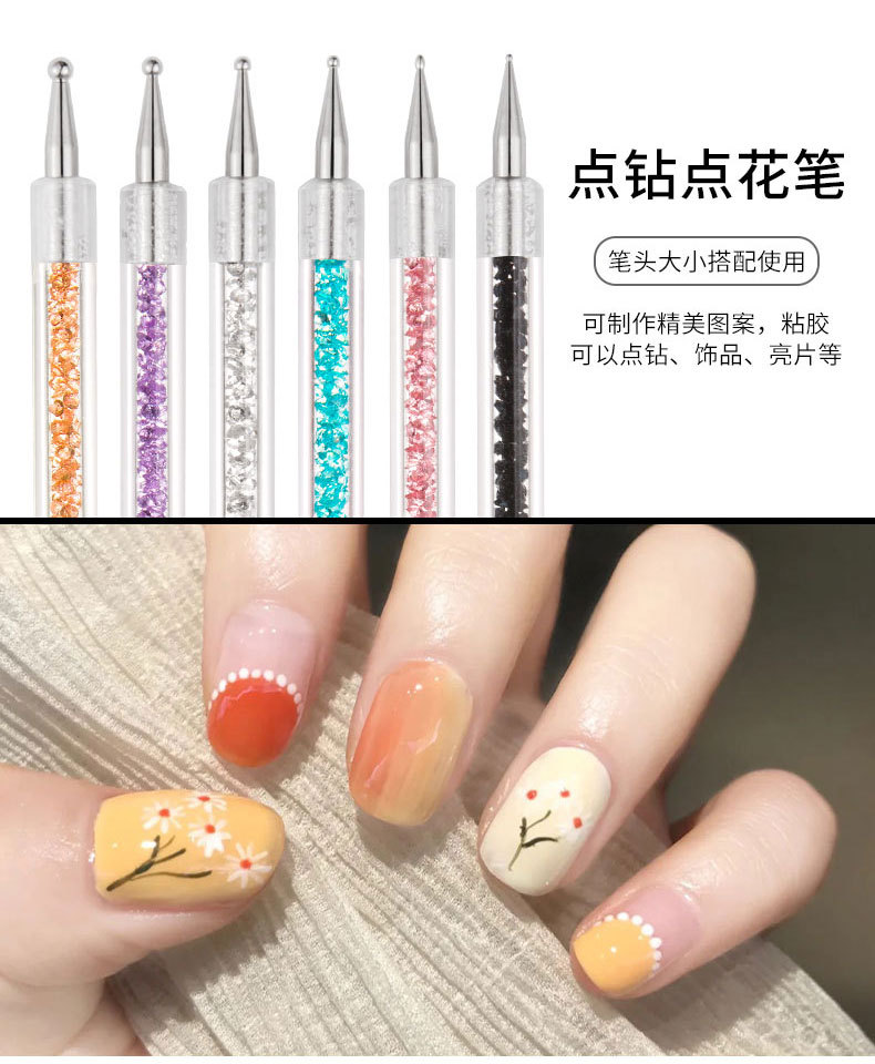 Amazon manicura pintado doble taladro pluma rhinestone color pintura flor tire línea terapia de luz gradiente pluma arte de uñas
