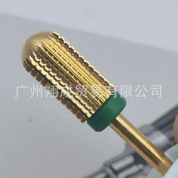 Arte de uñas de estilo japonés aleación de acero de tungsteno dorado cabeza de molienda grano recto arte de uñas de dos vías cabeza de molienda eliminación de uñas herramienta de molienda