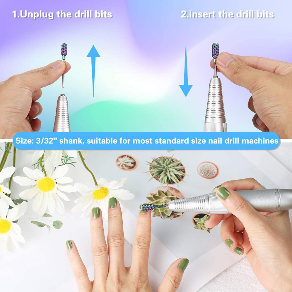 11 piezas de cerámica de colores de acero de tungsteno de uñas de esmeril pulido traje de cabeza de uñas removedor de la piel muerta cepillo de limpieza de la cabeza de molienda