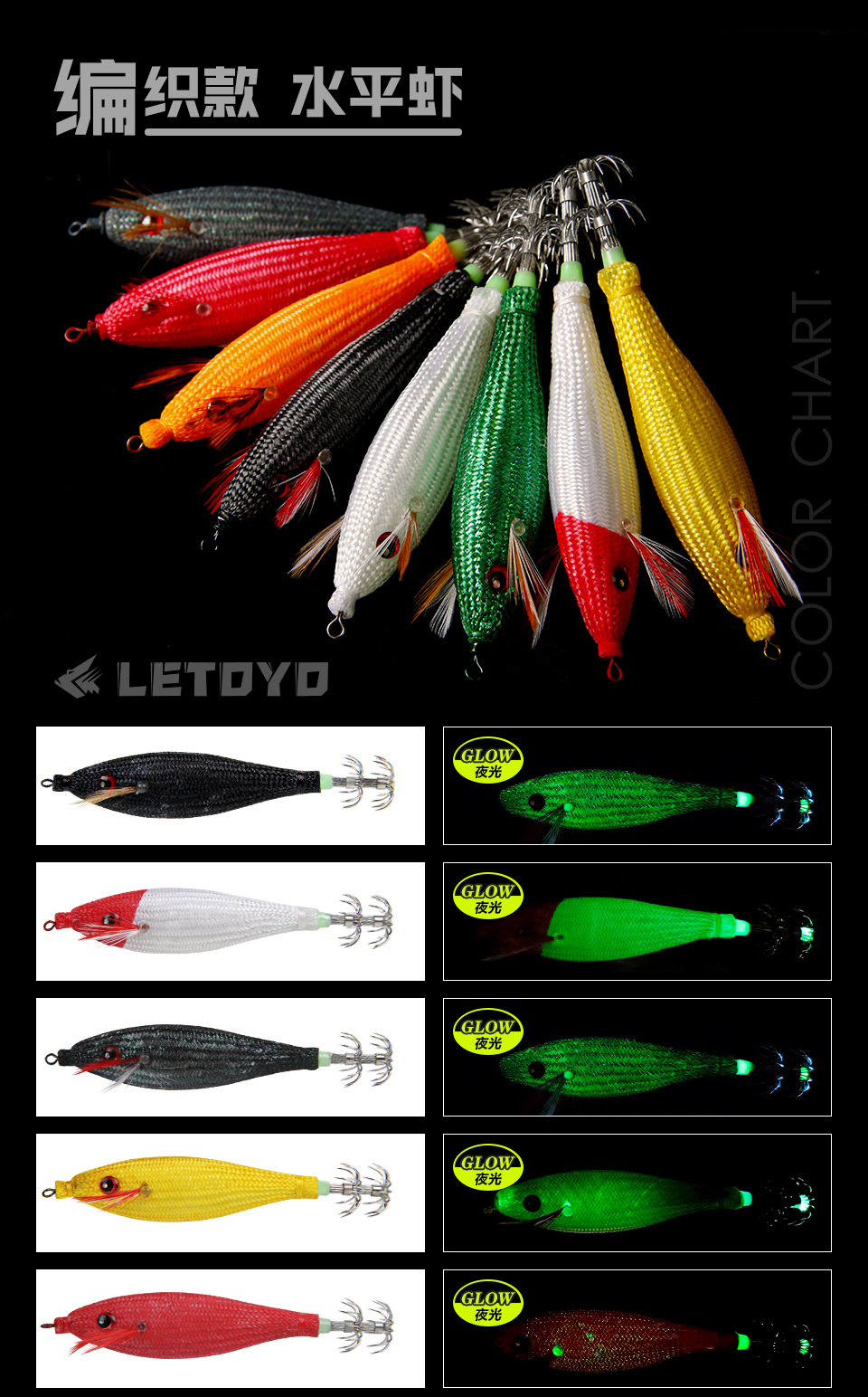 LT130827 nuevo camarón de madera Toto tejido luminoso falso cebo gancho de calamar gancho de la explosión