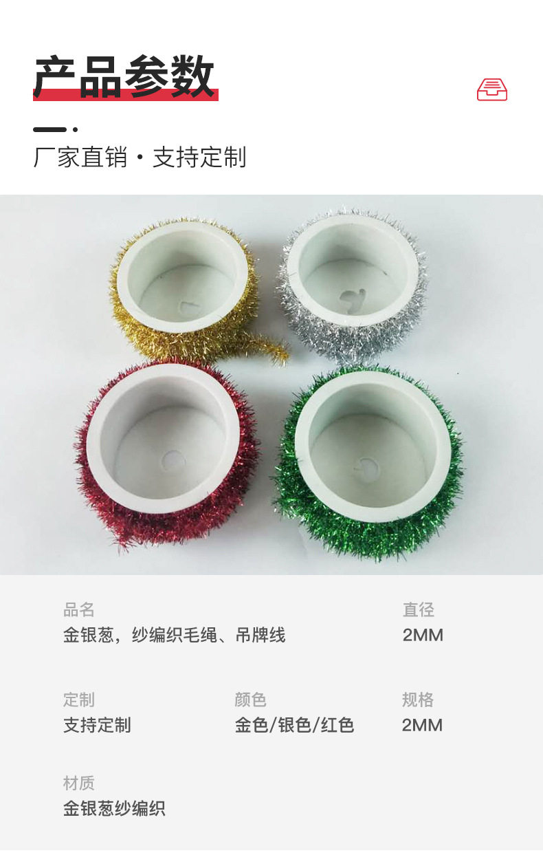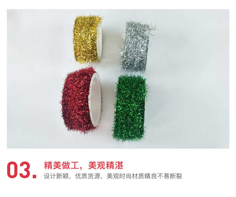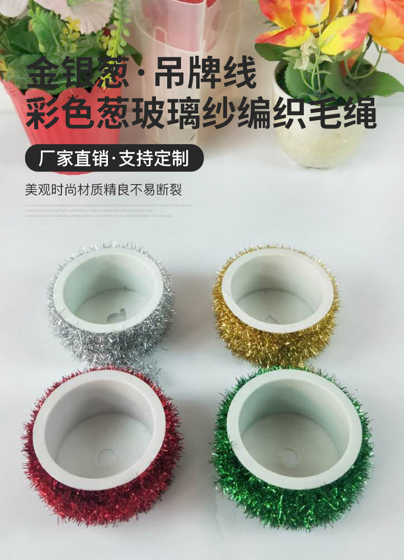 Fábrica al por mayor Hilados de vidrio de colores tira de lana actividad sitio diseño cuerda decorativa árbol de Navidad boda habitación colorida tira decorativa