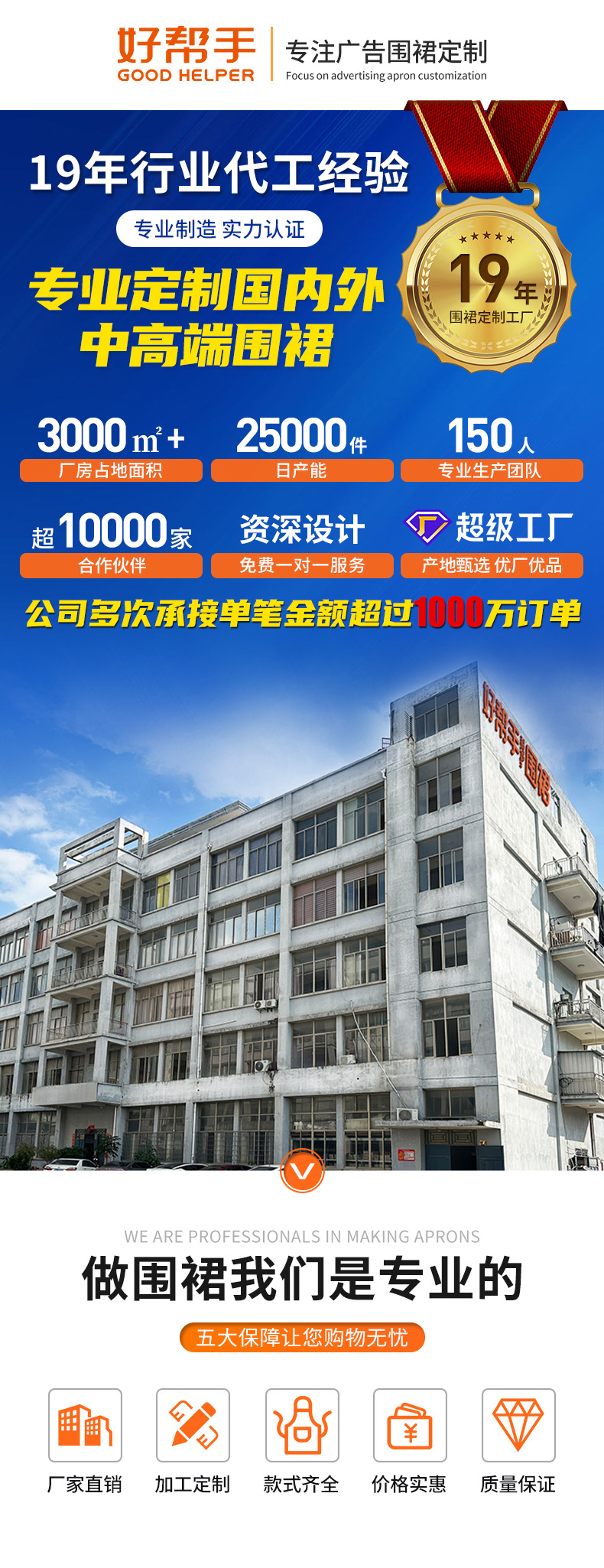 Delantal de lona de poliéster grueso personalizado para comercio exterior, se puede imprimir con logotipo, resistente al aceite, impermeable para uso doméstico en la cocina, delantal de trabajo al por mayor.