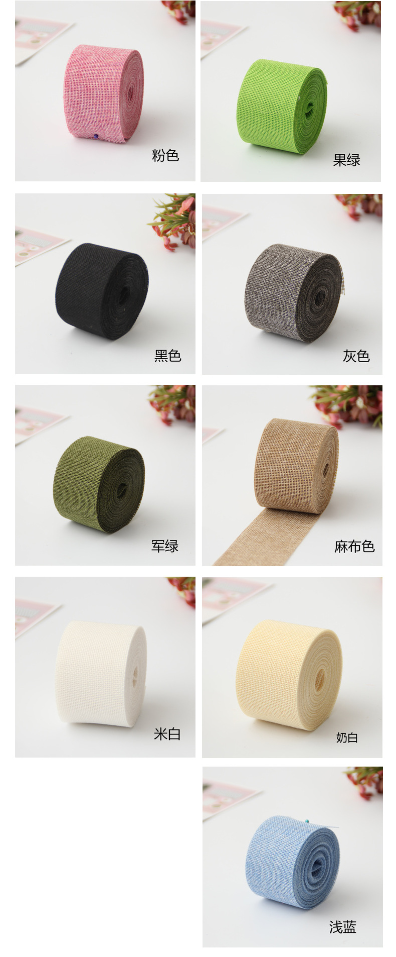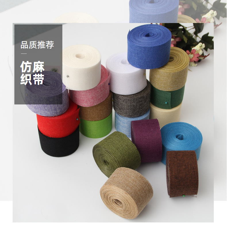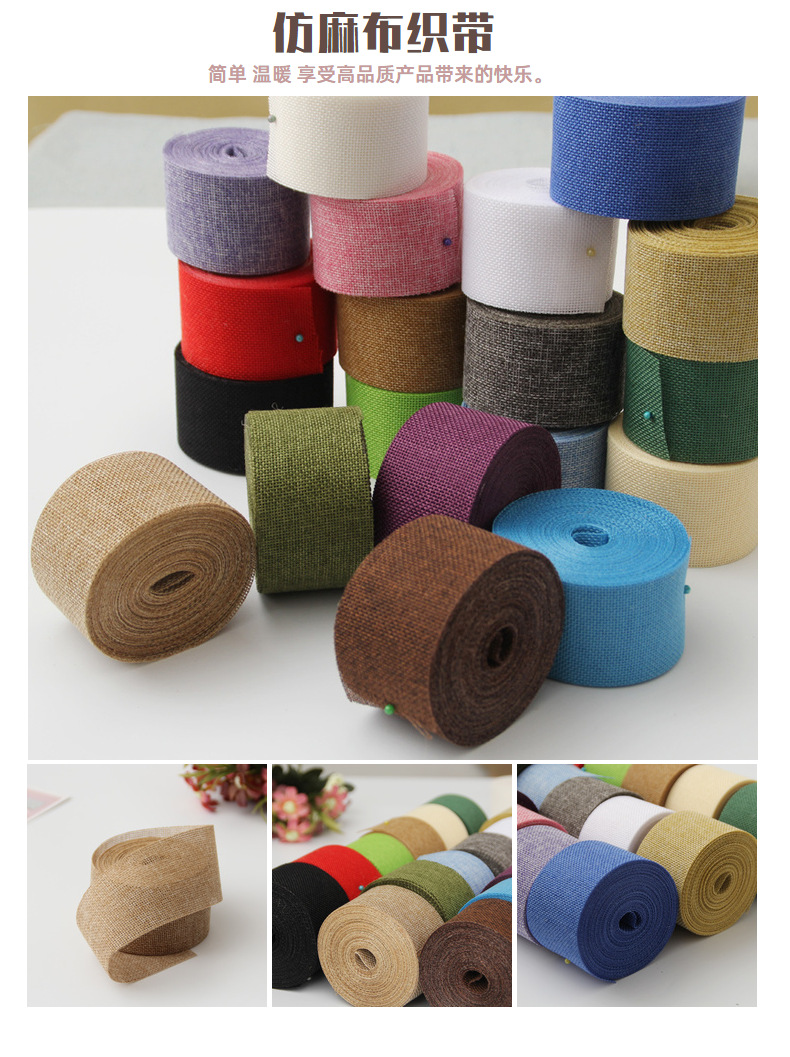 Cinta de lino de imitación DIY decoración de la boda 5CM color poliéster rollo de lino decoración del partido ventas directas de la fábrica