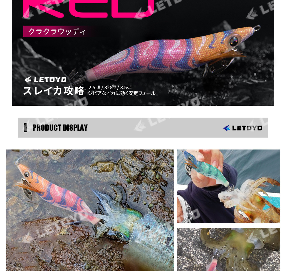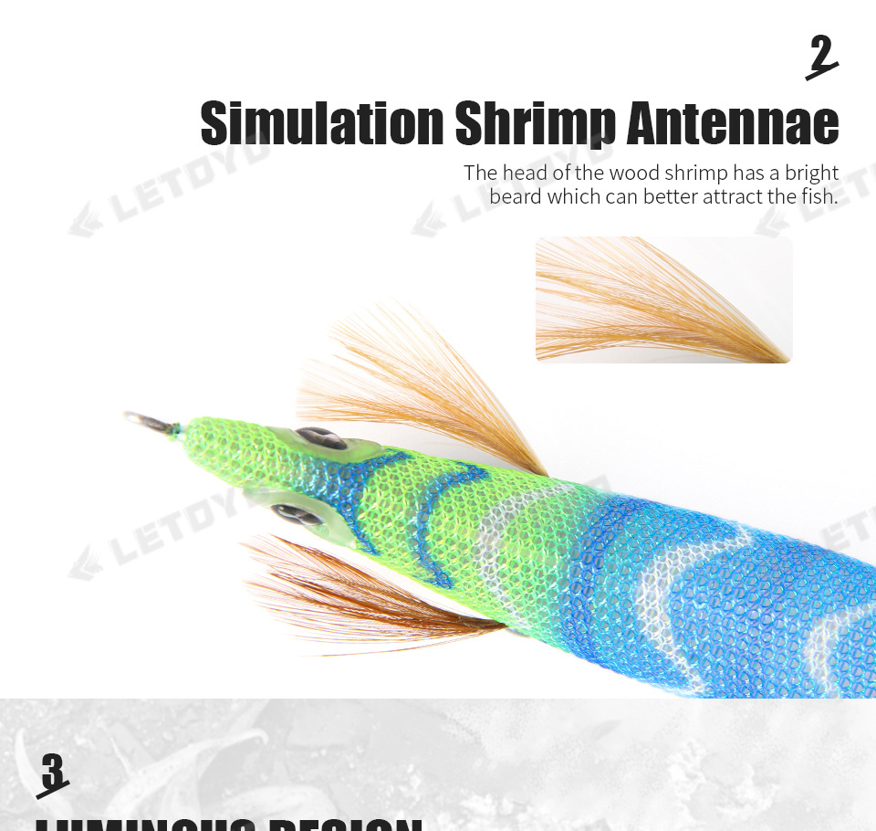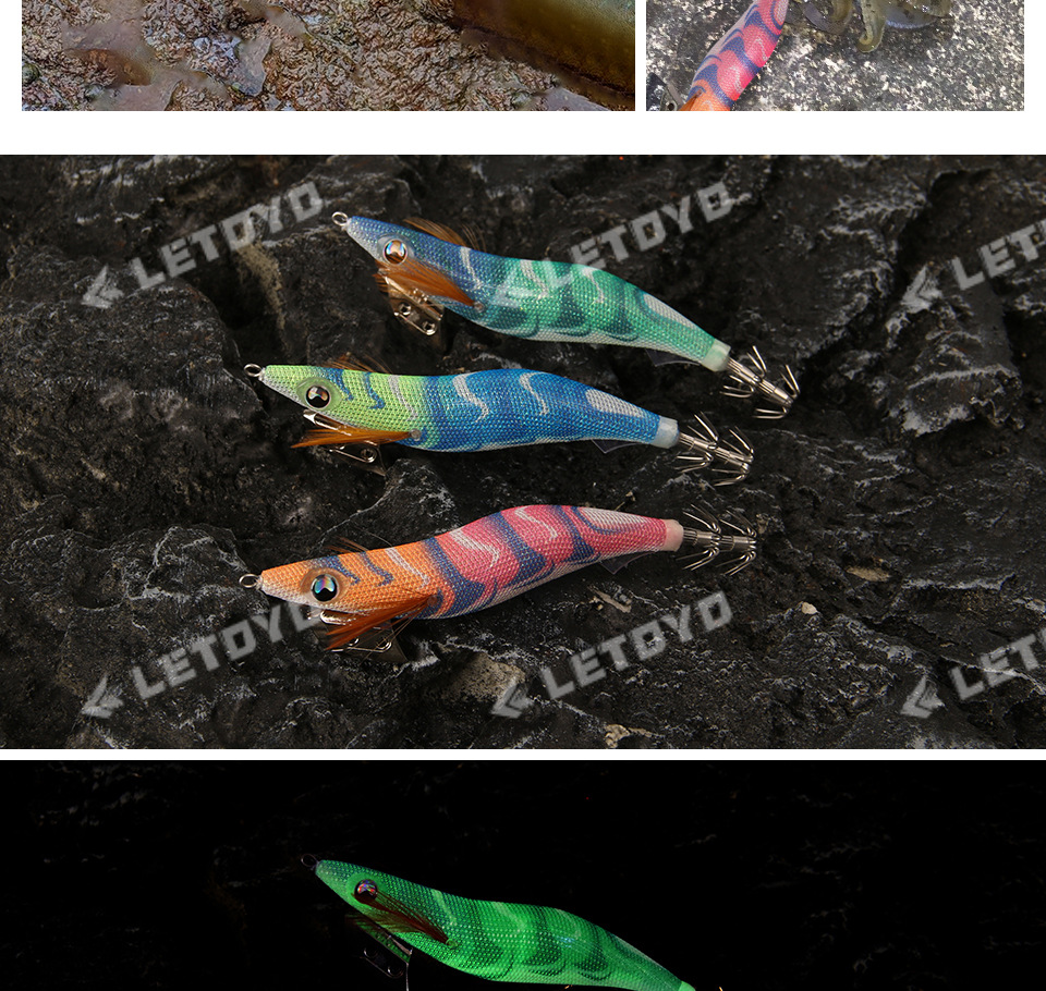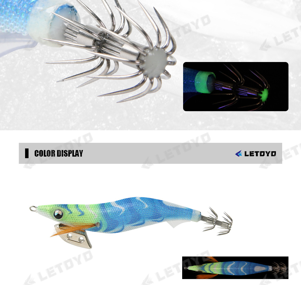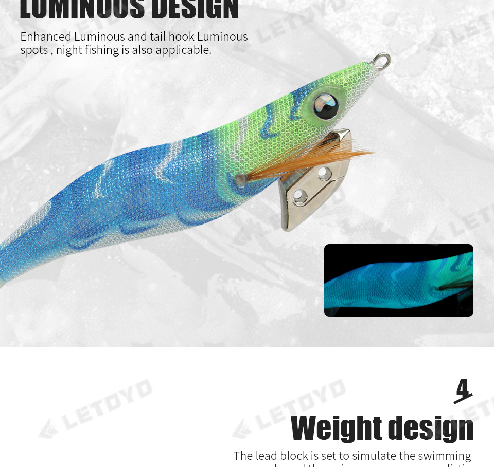 LETOYO Luya neón SERIE DE MADERA Camarón calamar gancho calamar plantilla 2,5/3,0/3,5 #