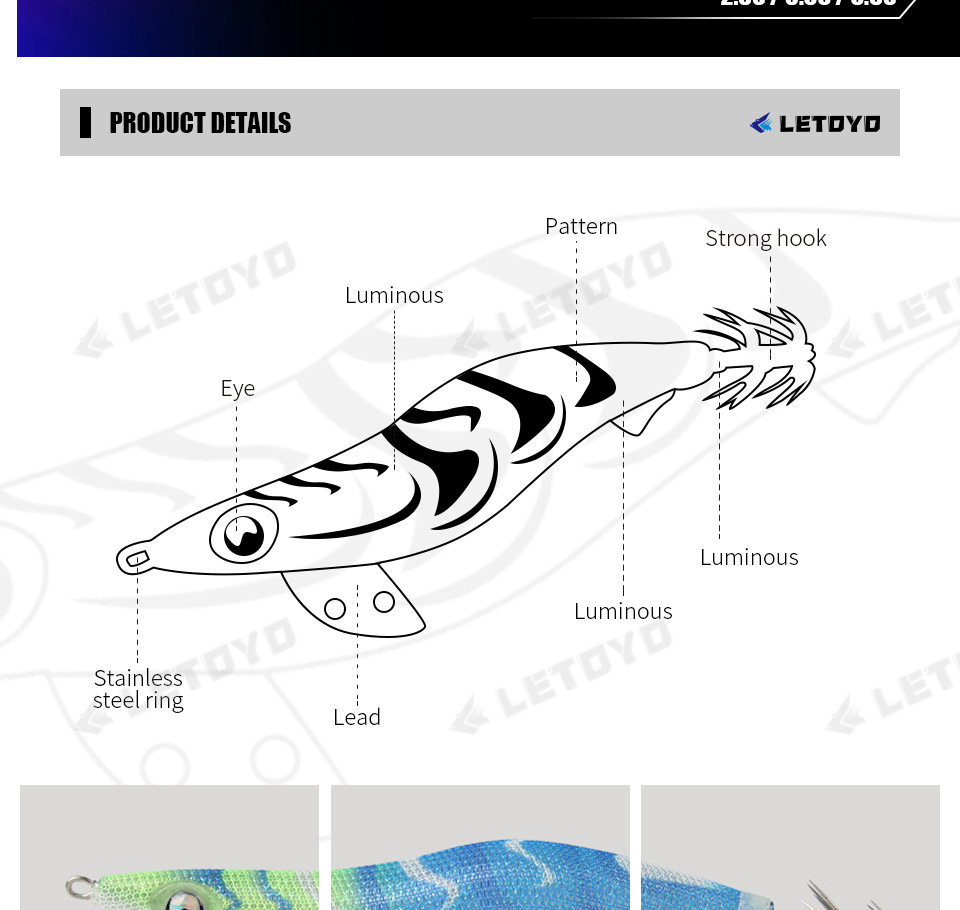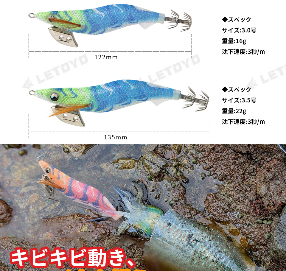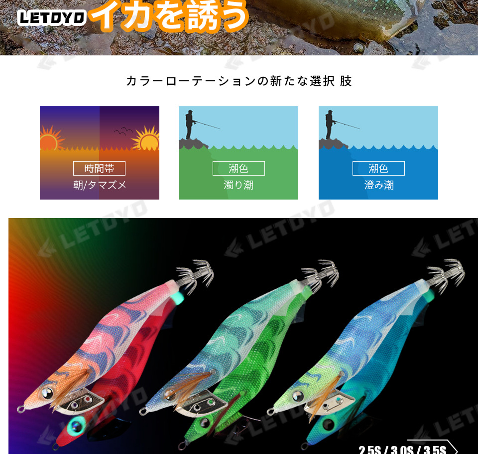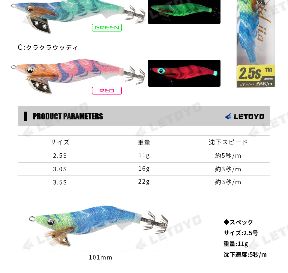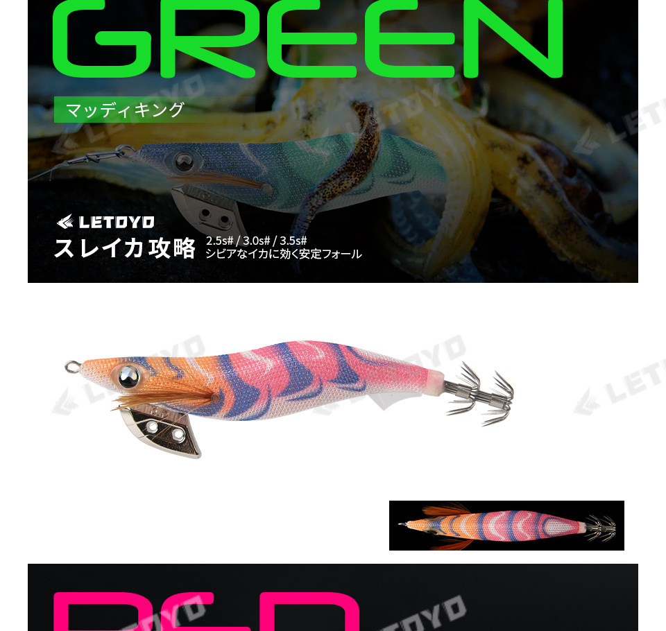 LETOYO Luya neón SERIE DE MADERA Camarón calamar gancho calamar plantilla 2,5/3,0/3,5 #