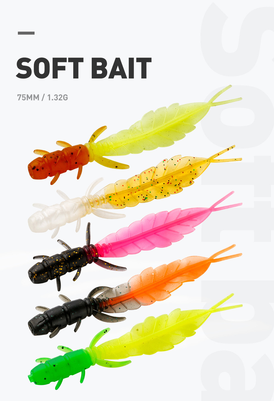 Luya cebo suave miniatura de dos colores aguja cola 5 piezas 75mm/1,3G falso cebo raíz pesca bajo mandarín fábrica de pescado al por mayor