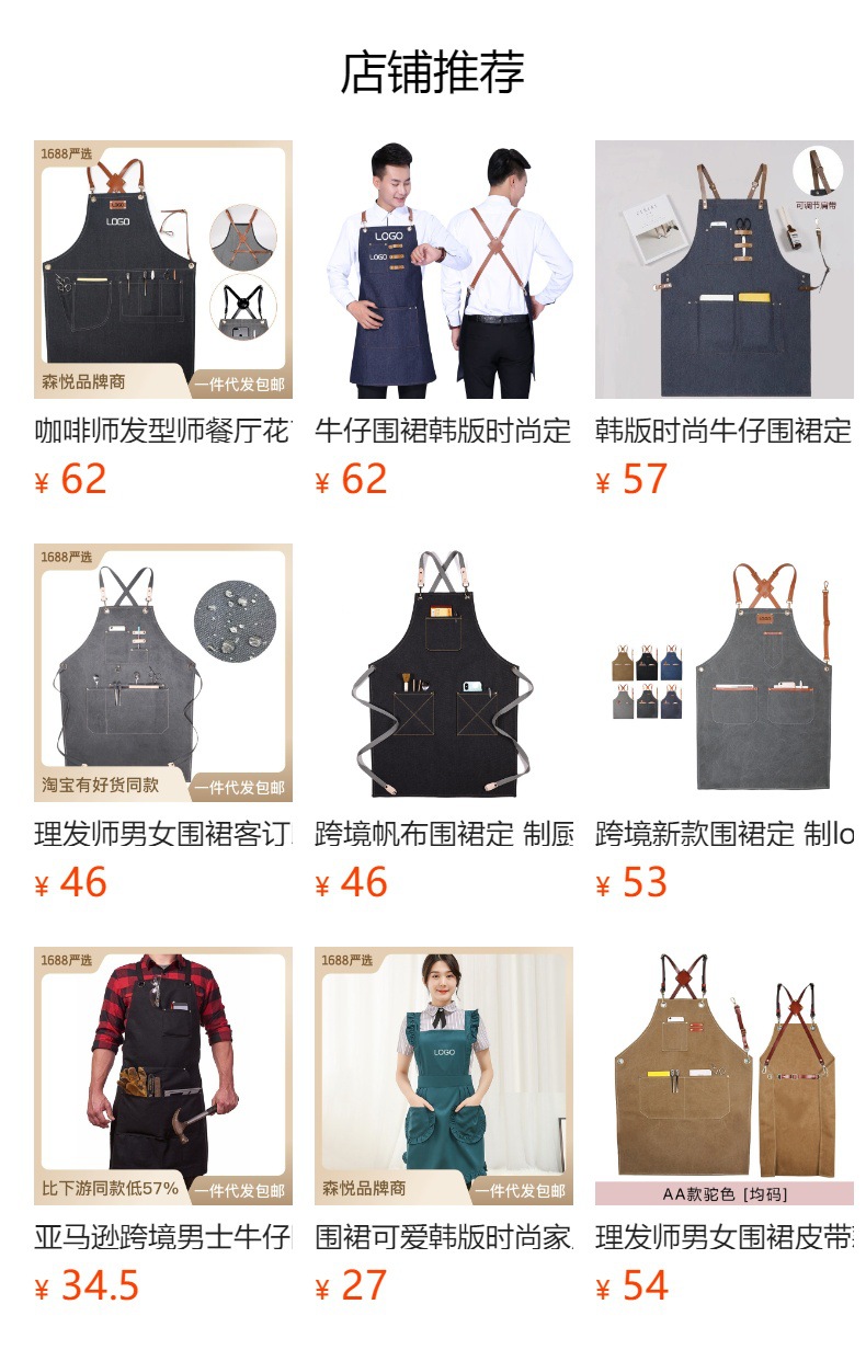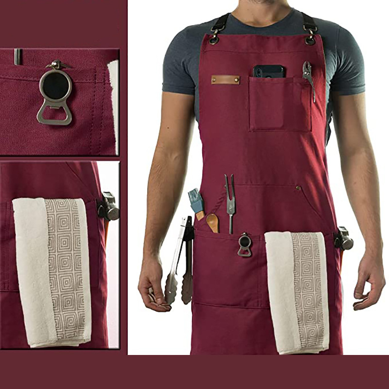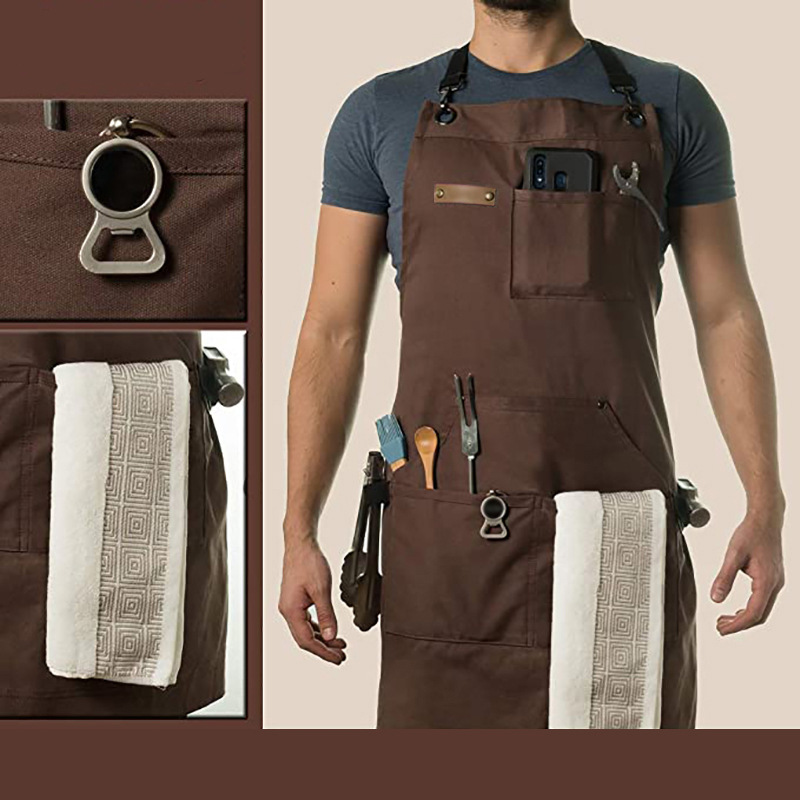 Amazon transfronteriza delantal de lona de algodón logotipo personalizado Cafe Barber overoles delantal de fábrica al por mayor
