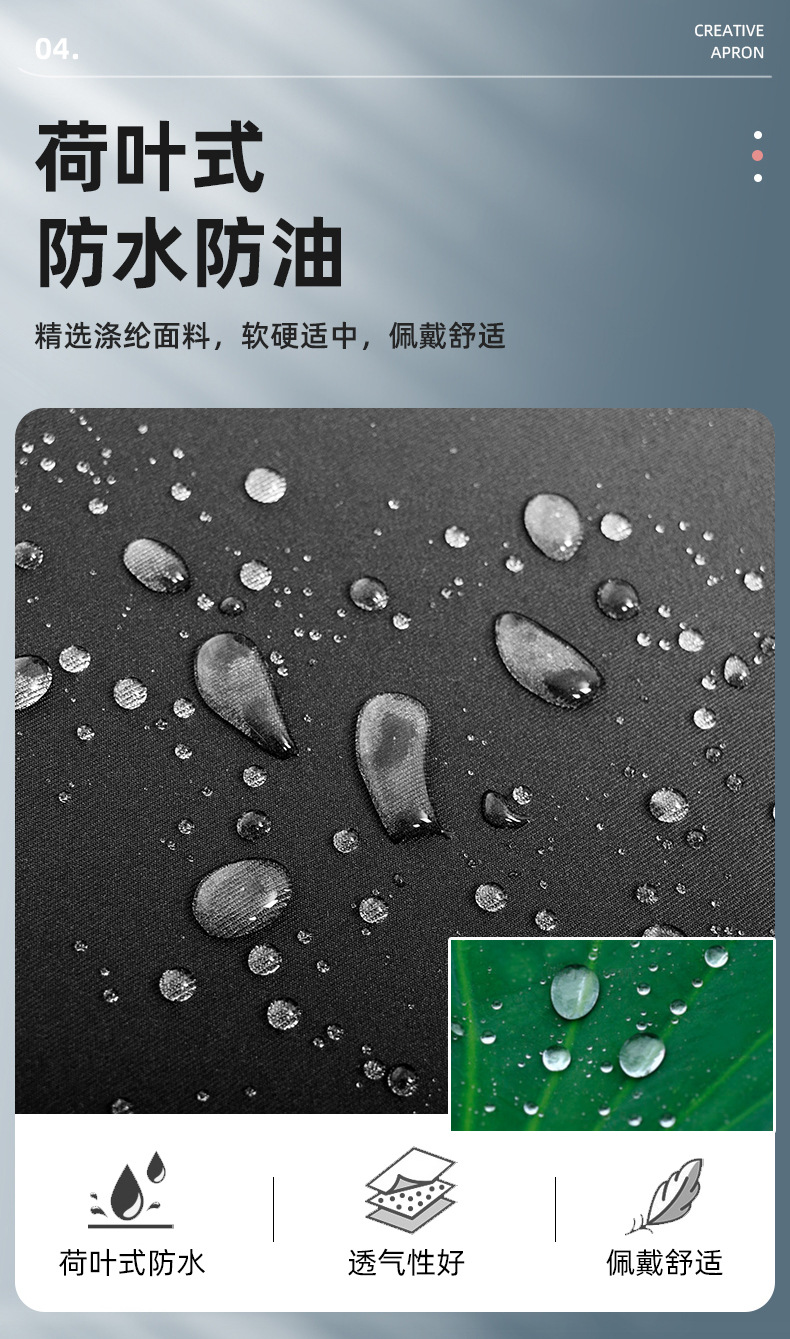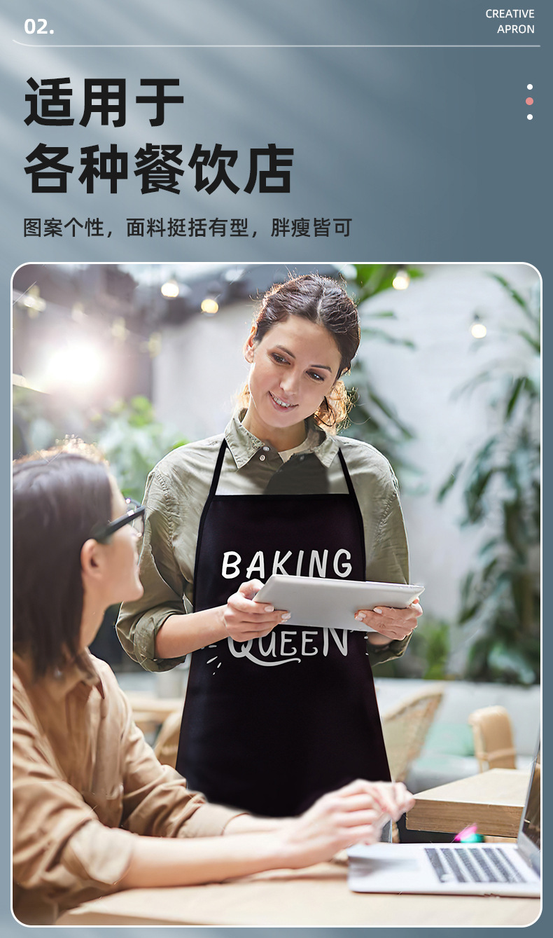 Fábrica de suministro transfronterizo de cocina para el hogar delantal de cocina a prueba de aceite impermeable cintura delgada de las mujeres abrigo transpirable impresión de los hombres