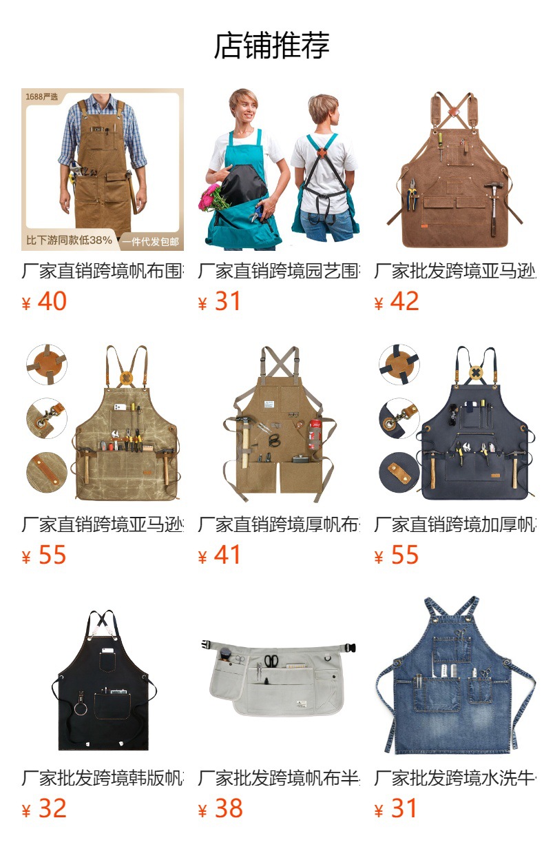 Venta directa de fábrica, falda de lona gruesa transfronteriza, herramienta artesanal con múltiples bolsillos, delantal, ropa de trabajo de jardinería, delantal al por mayor