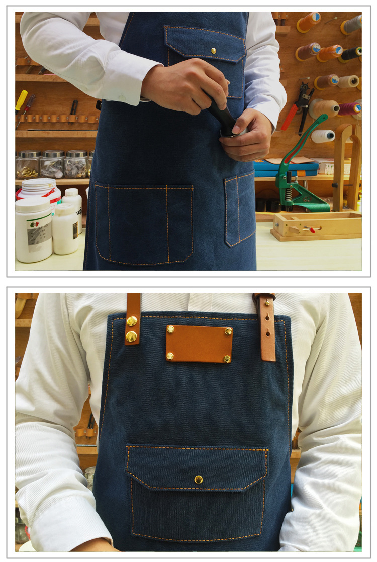 Estilo coreano de los hombres y las mujeres de moda Denim delantal personalizado tienda de café al por mayor engrosada ropa de trabajo personalizado logotipo delantal impresión