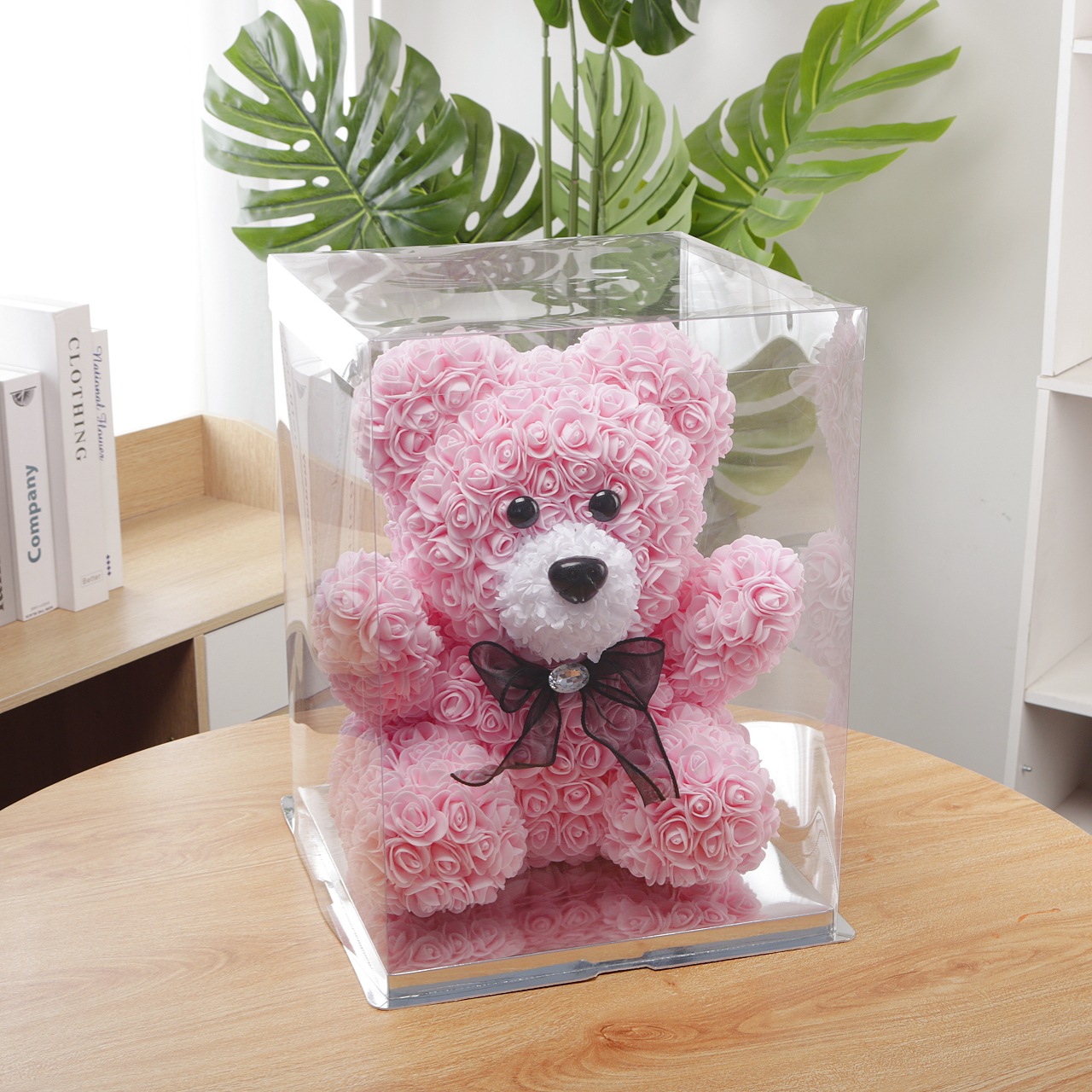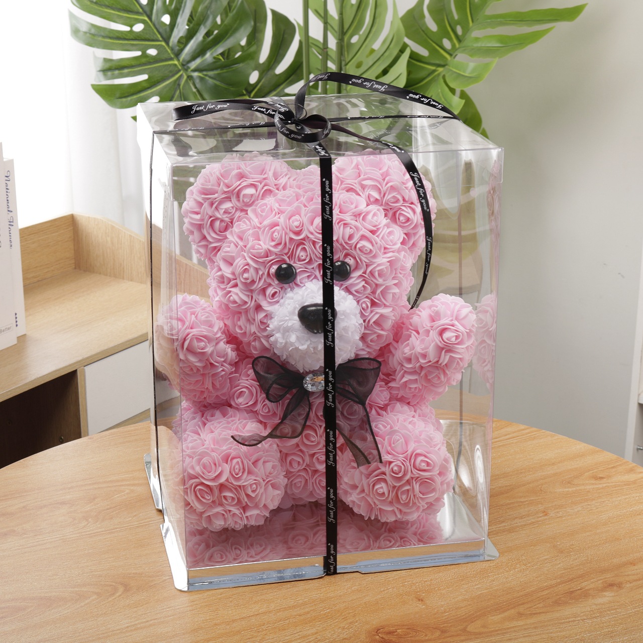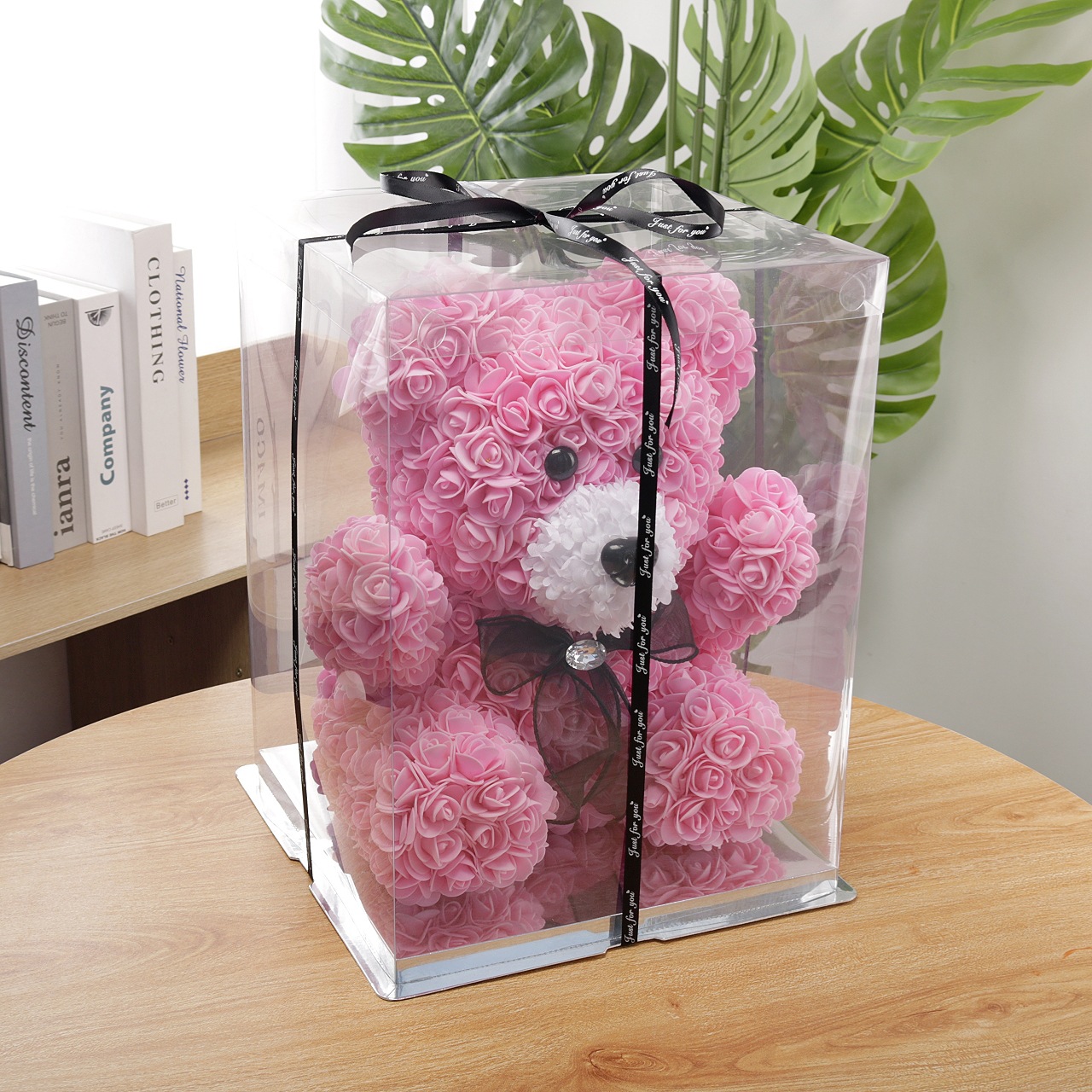 Flor preservada oso rosa 520 regalo del Día de San Valentín tienda de flores supermercado PE espuma flor abrazo oso rosa