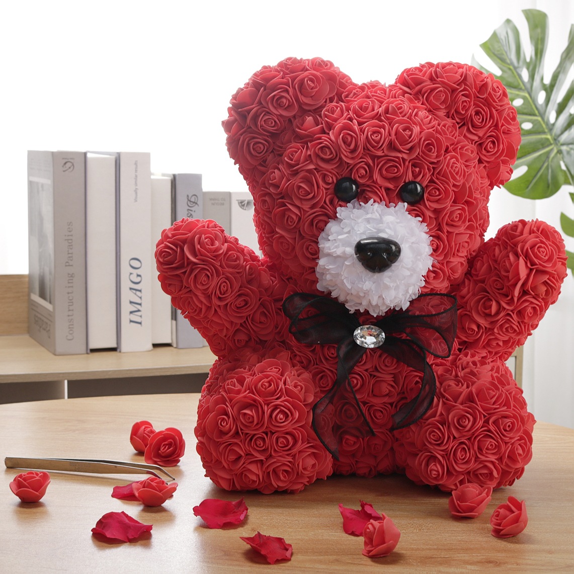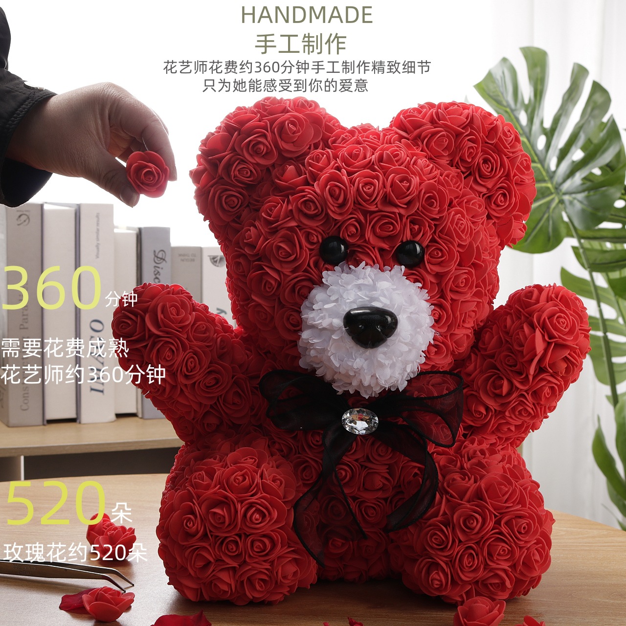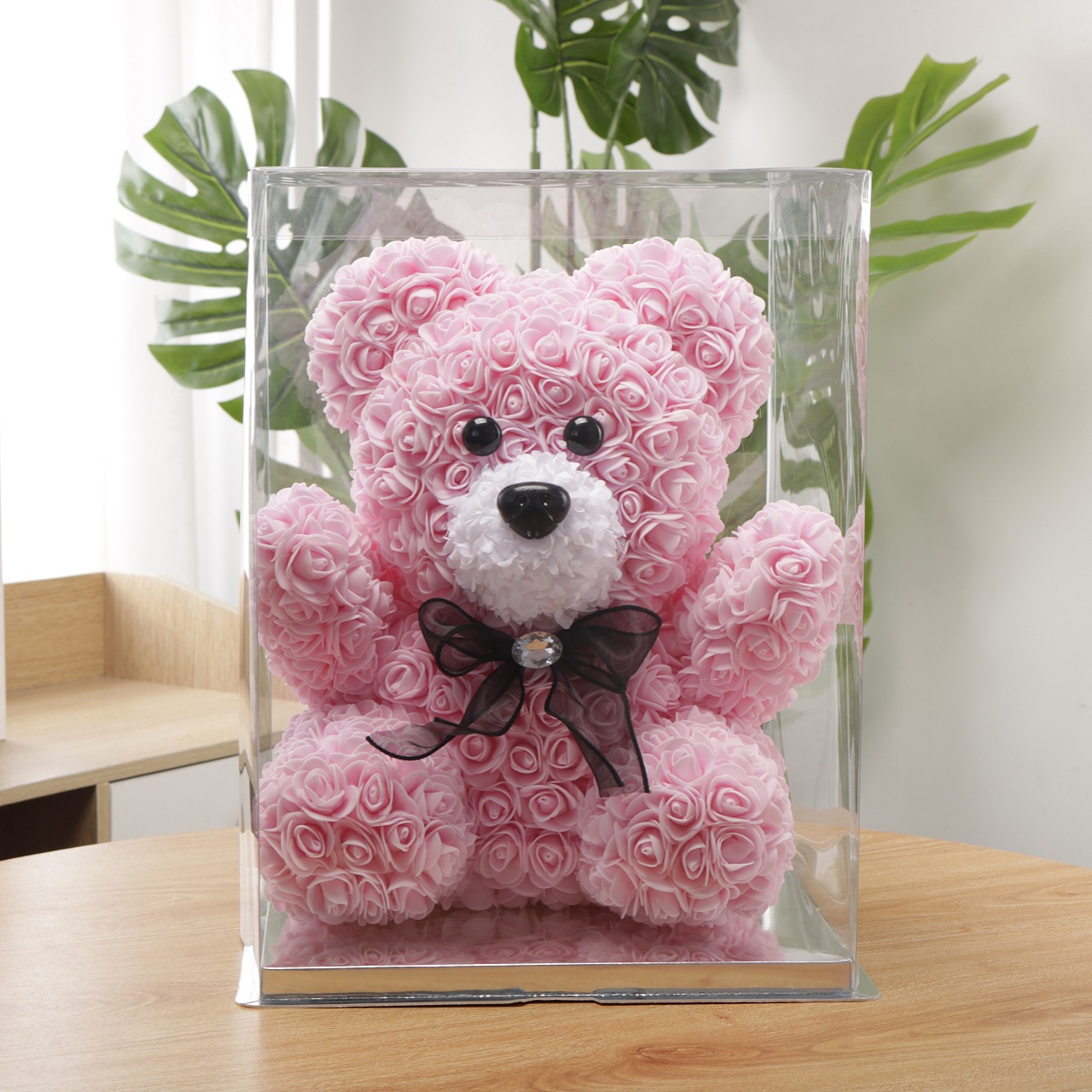 Flor preservada oso rosa 520 regalo del Día de San Valentín tienda de flores supermercado PE espuma flor abrazo oso rosa